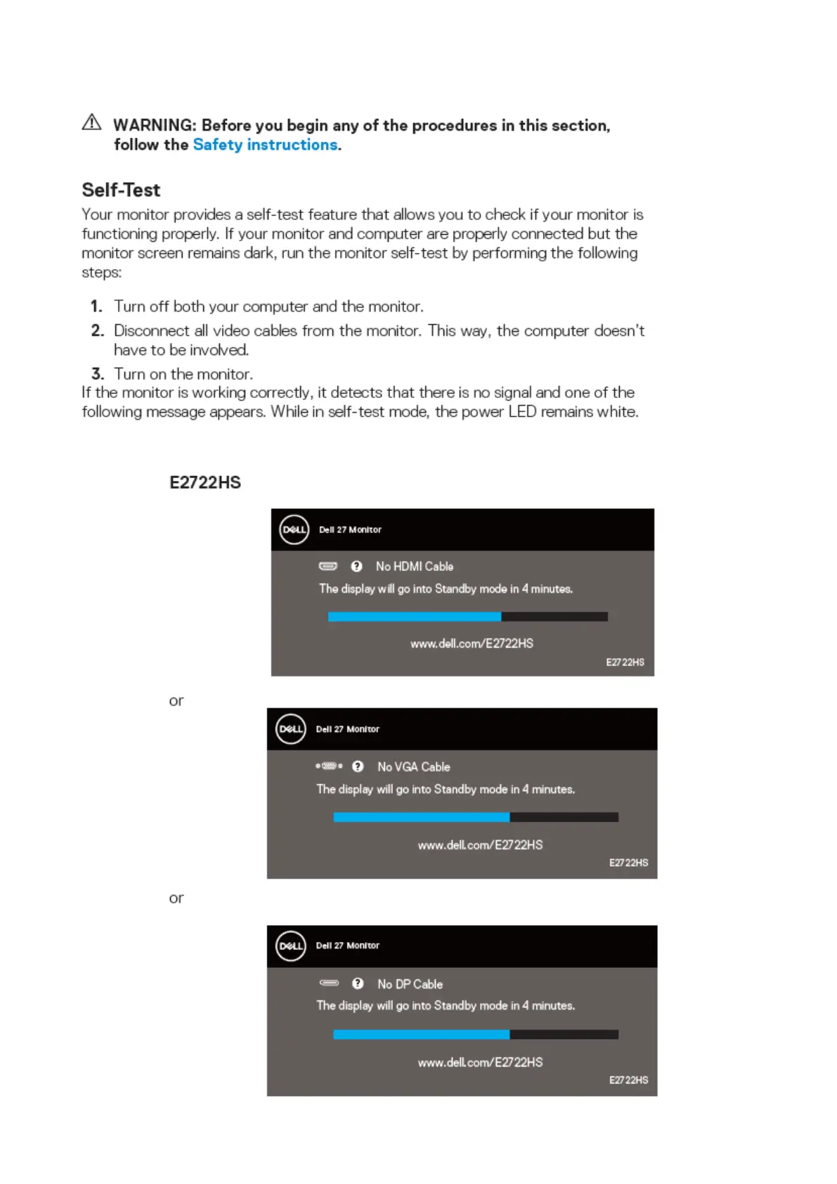 Dell E2722HS - Troubleshooting; Monitor Self-Test