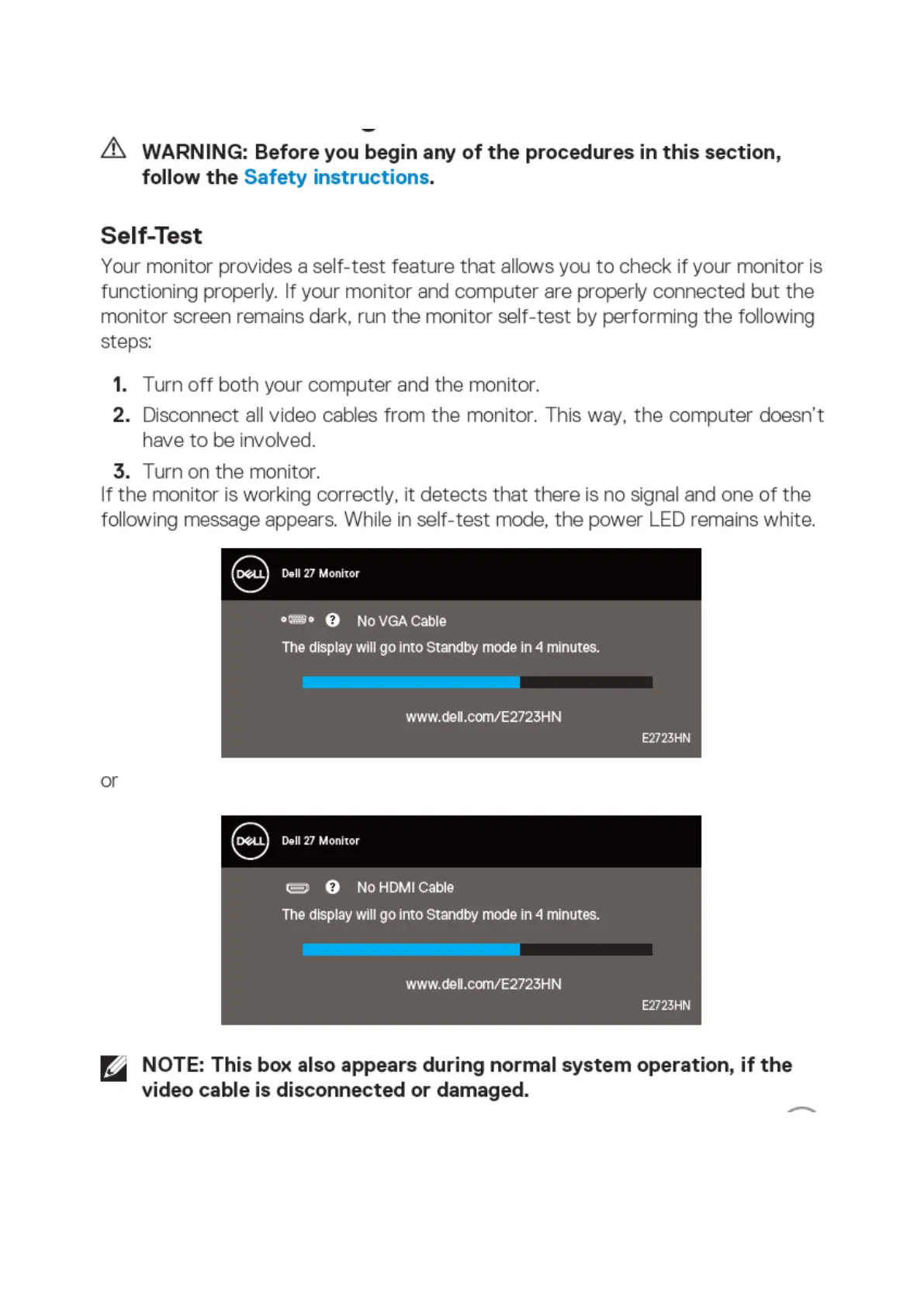 Dell E2723HN - Troubleshooting Guide; Monitor Self-Test Function