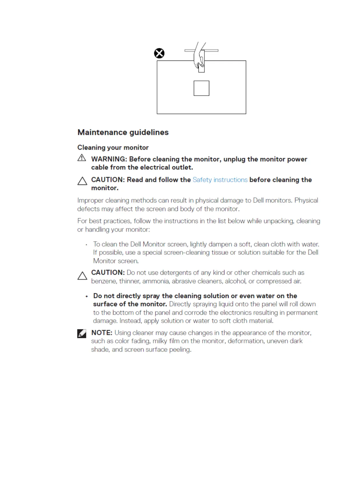 Dell E2723HN - Monitor Maintenance; Cleaning the Monitor Screen and Body