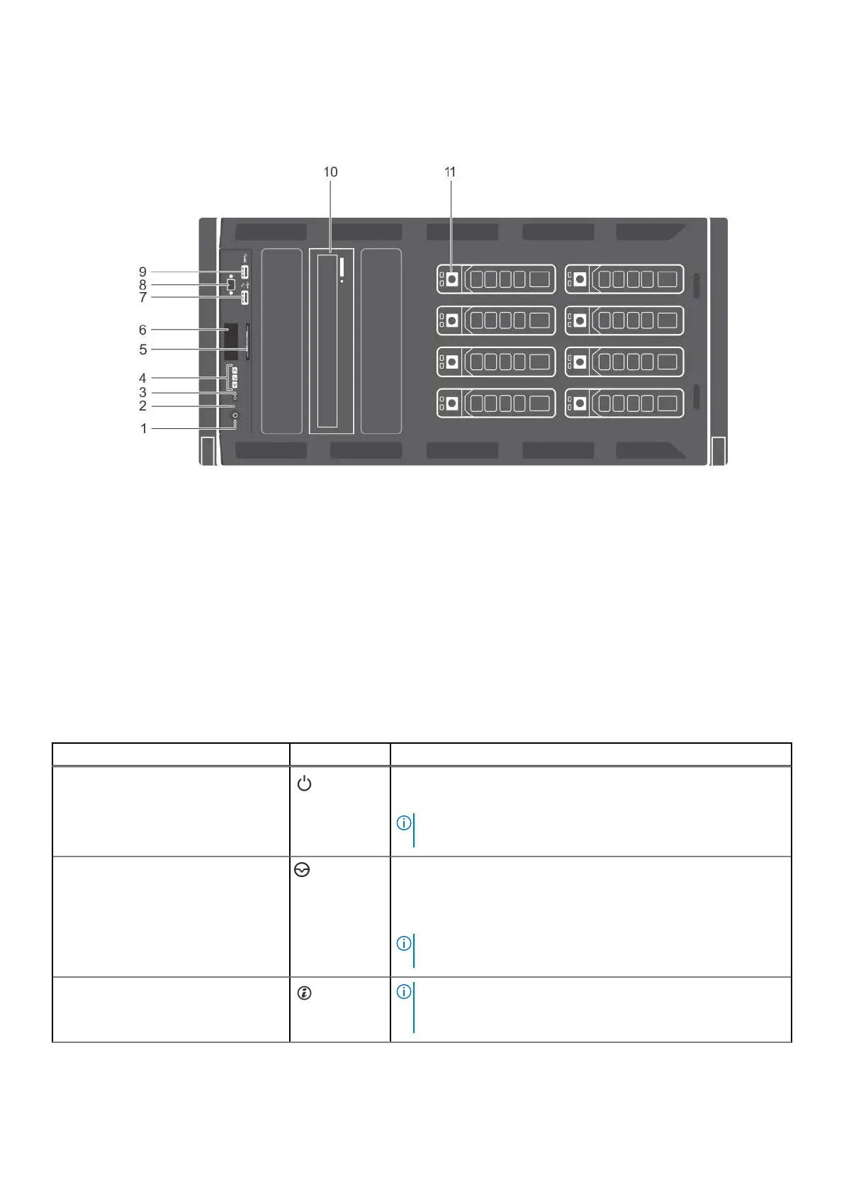 Table 4. Front panel features — 8 x 3.5-inch hot swappable hard drive chassis