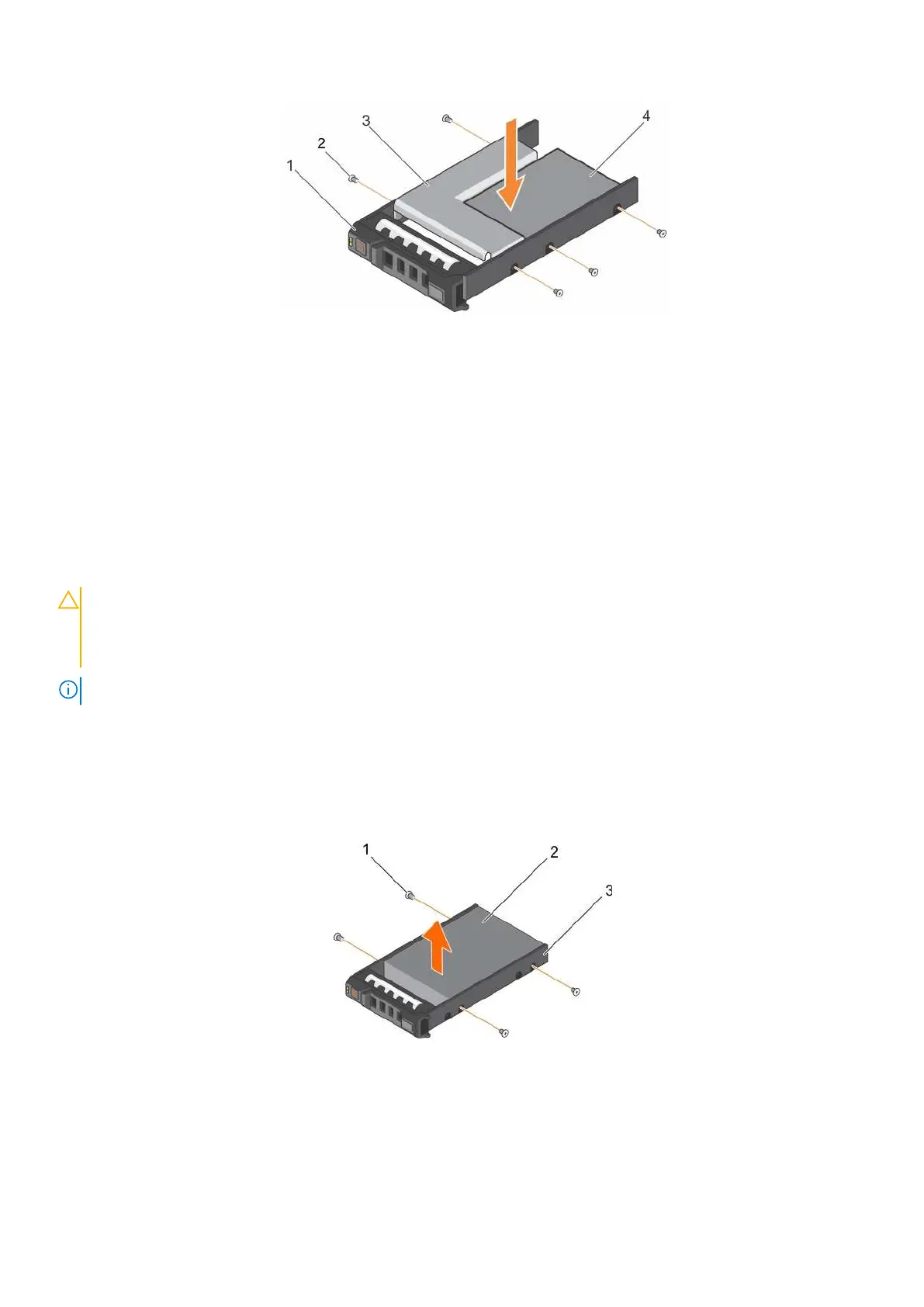 1. 3.5-inch hot swappable hard drive carrier 2. screw (5)