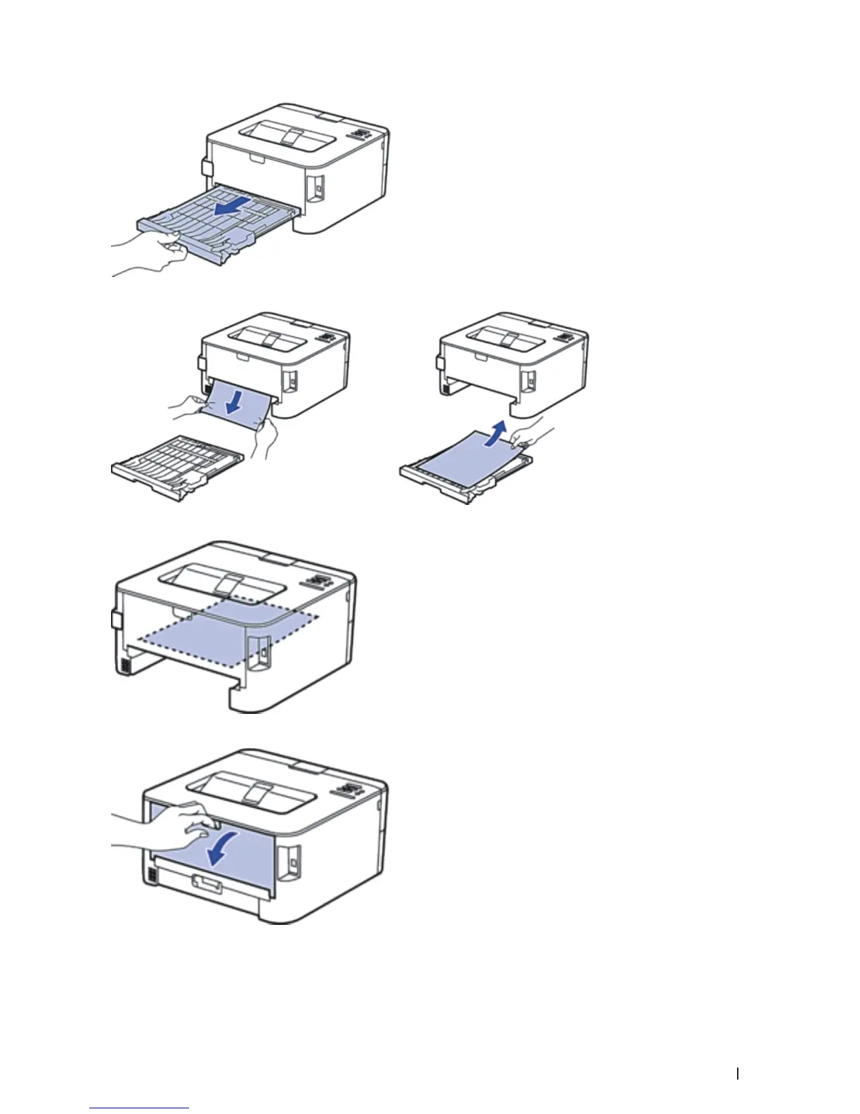 4. Pull the jammed paper out of the machine or out of the 2-sided tray.