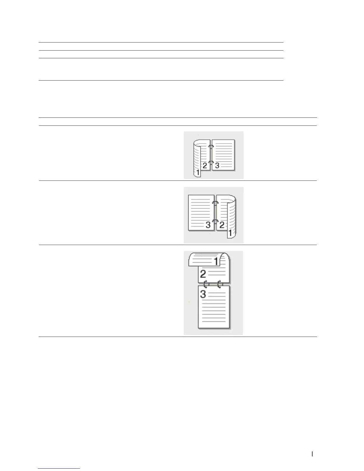 When 2-sided is selected, four types of 2-sided binding are available for each orientation: