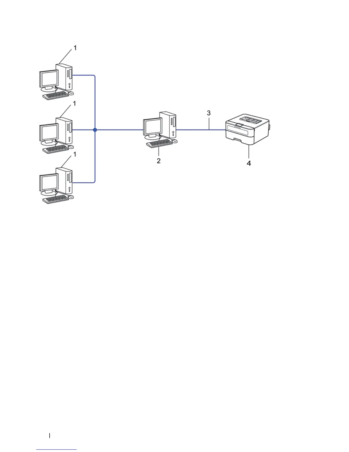NOTE: In a larger network, we recommend a Network Shared Printing environment.