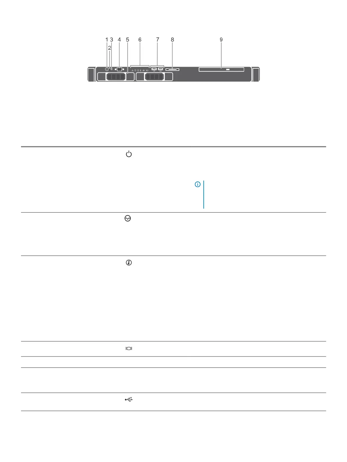 Table 4. Front panel features and indicators — two 3.5-inch cabled hard drive chassis