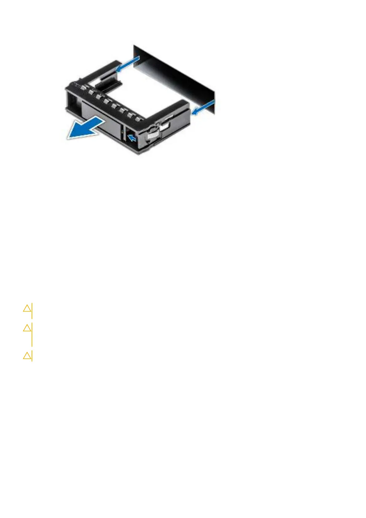Insert the hard drive blank into the hard drive slot and push until the release button clicks into place.