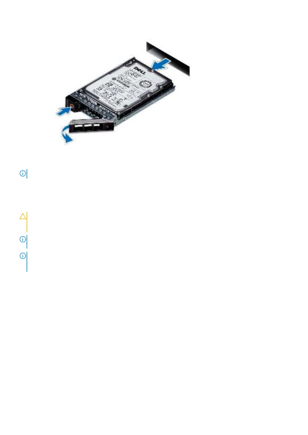 CAUTION: When installing a hard drive, ensure that the adjacent drives are fully installed. Inserting a hard drive