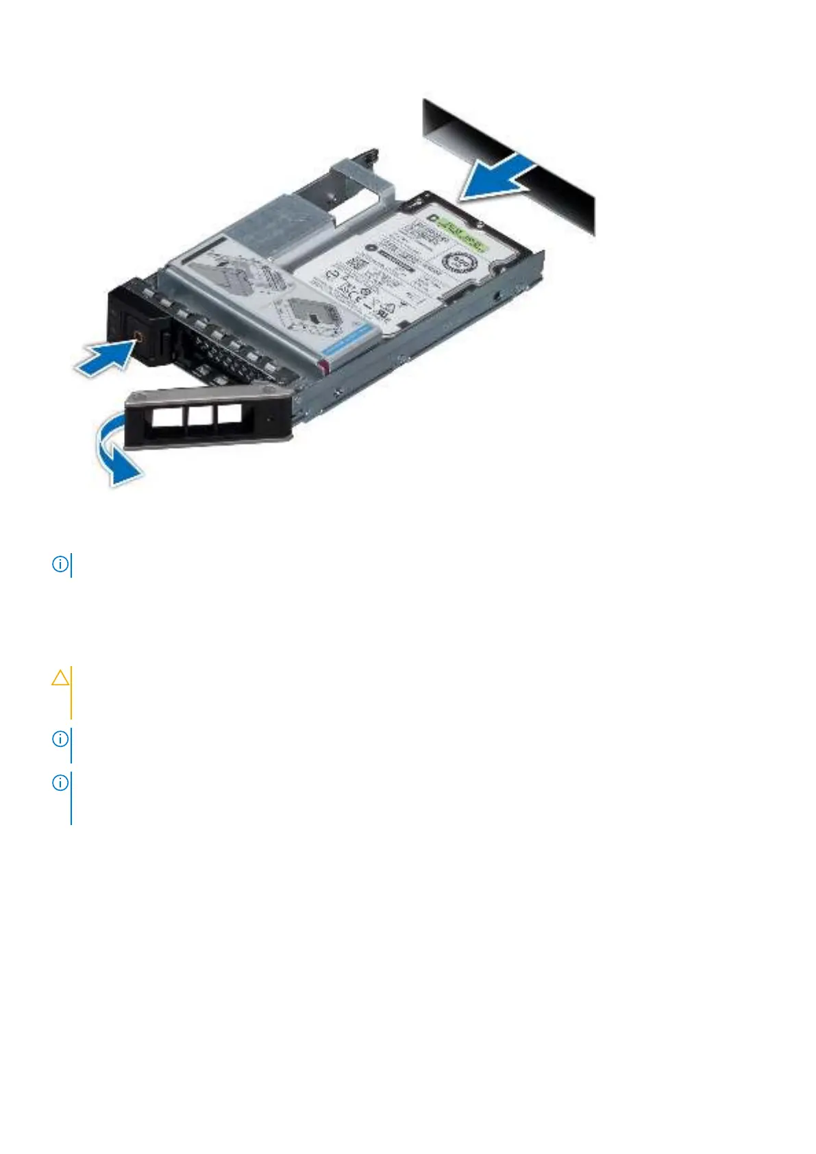 CAUTION: When installing a hard drive, ensure that the adjacent drives are fully installed. Inserting a hard drive