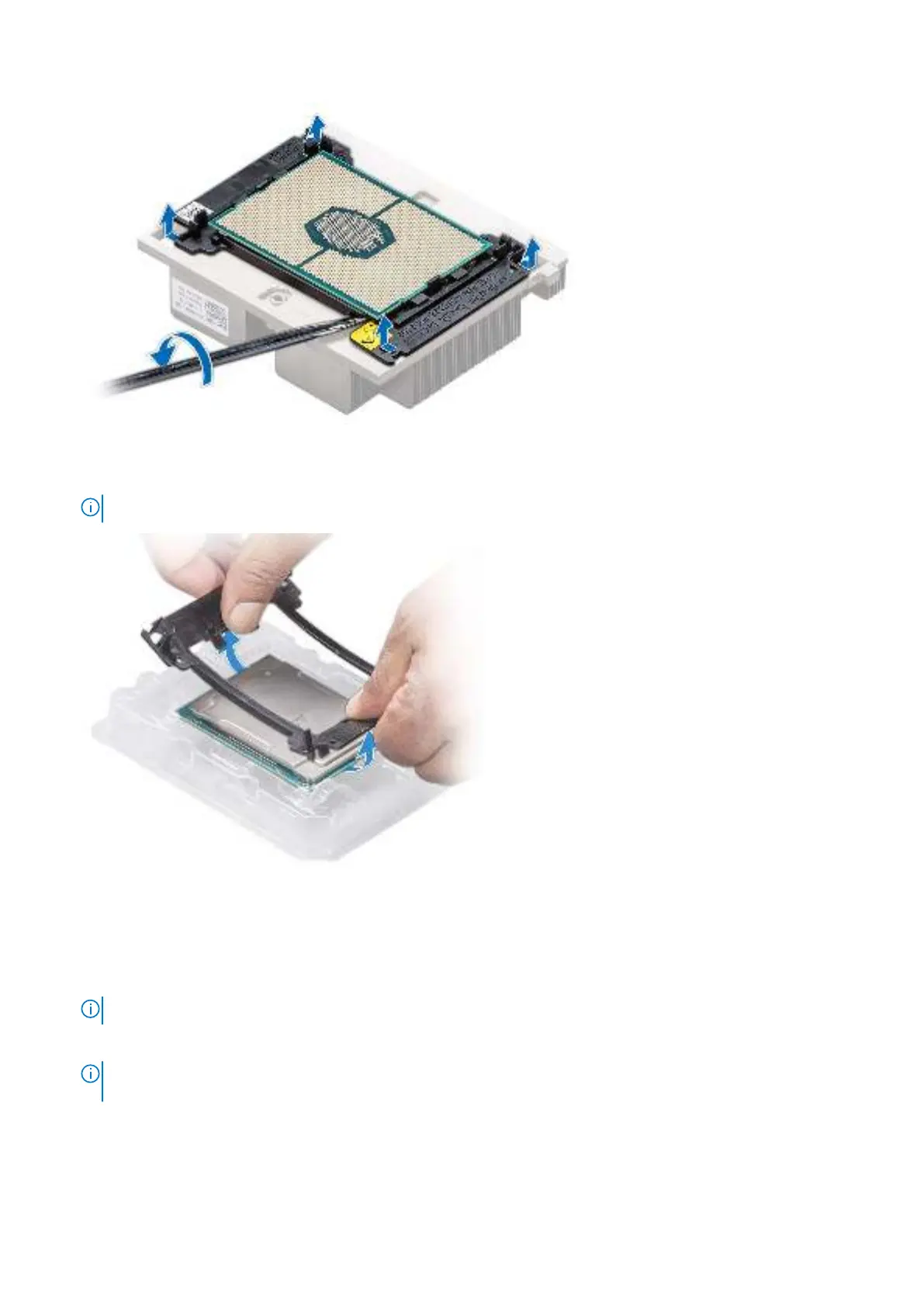NOTE: Ensure that pin 1 indicator on the CPU tray is aligned with the pin 1 indicator on the processor.