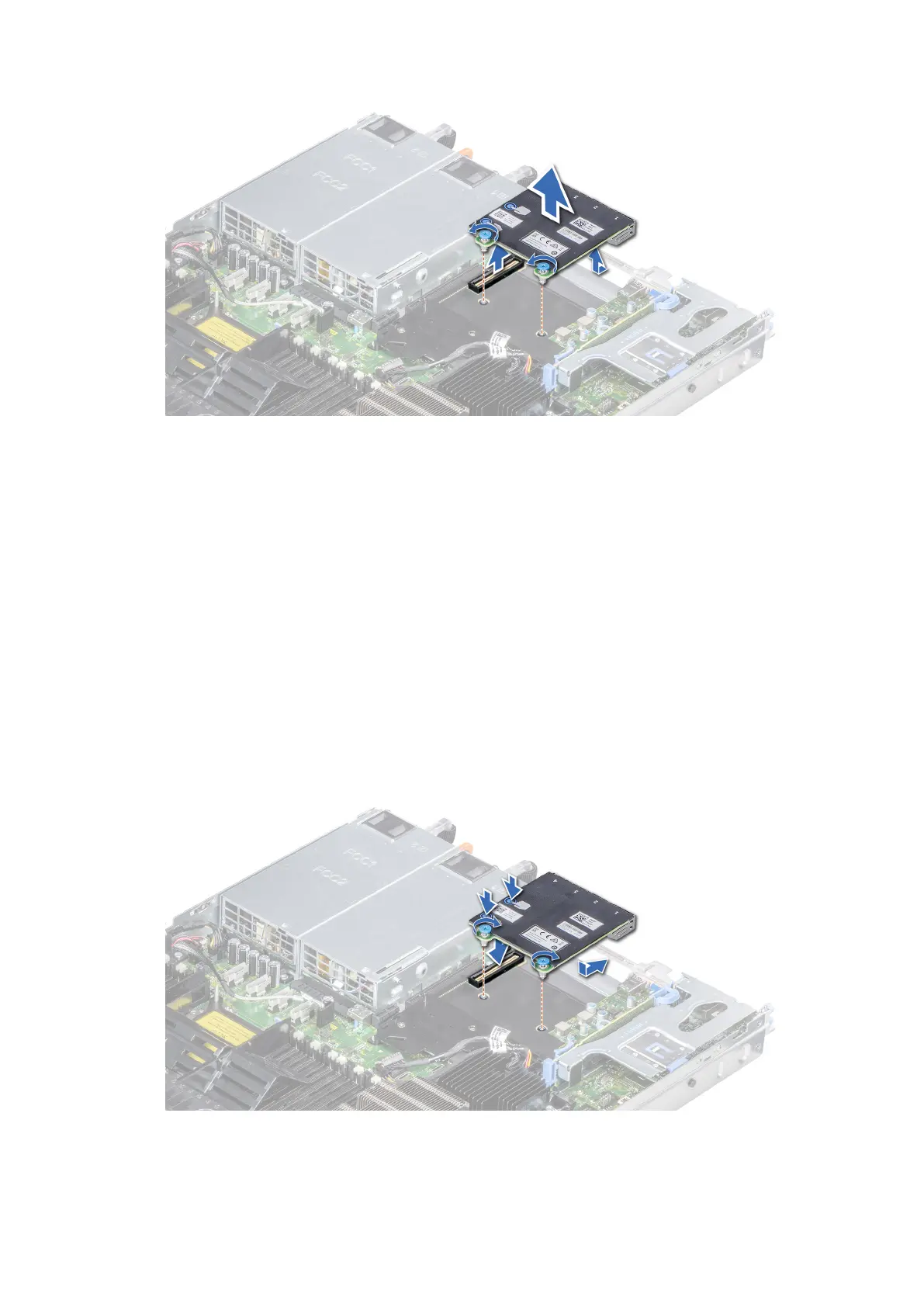2. Align the captive screws at the back-end of the card with the screw holes on the system board.