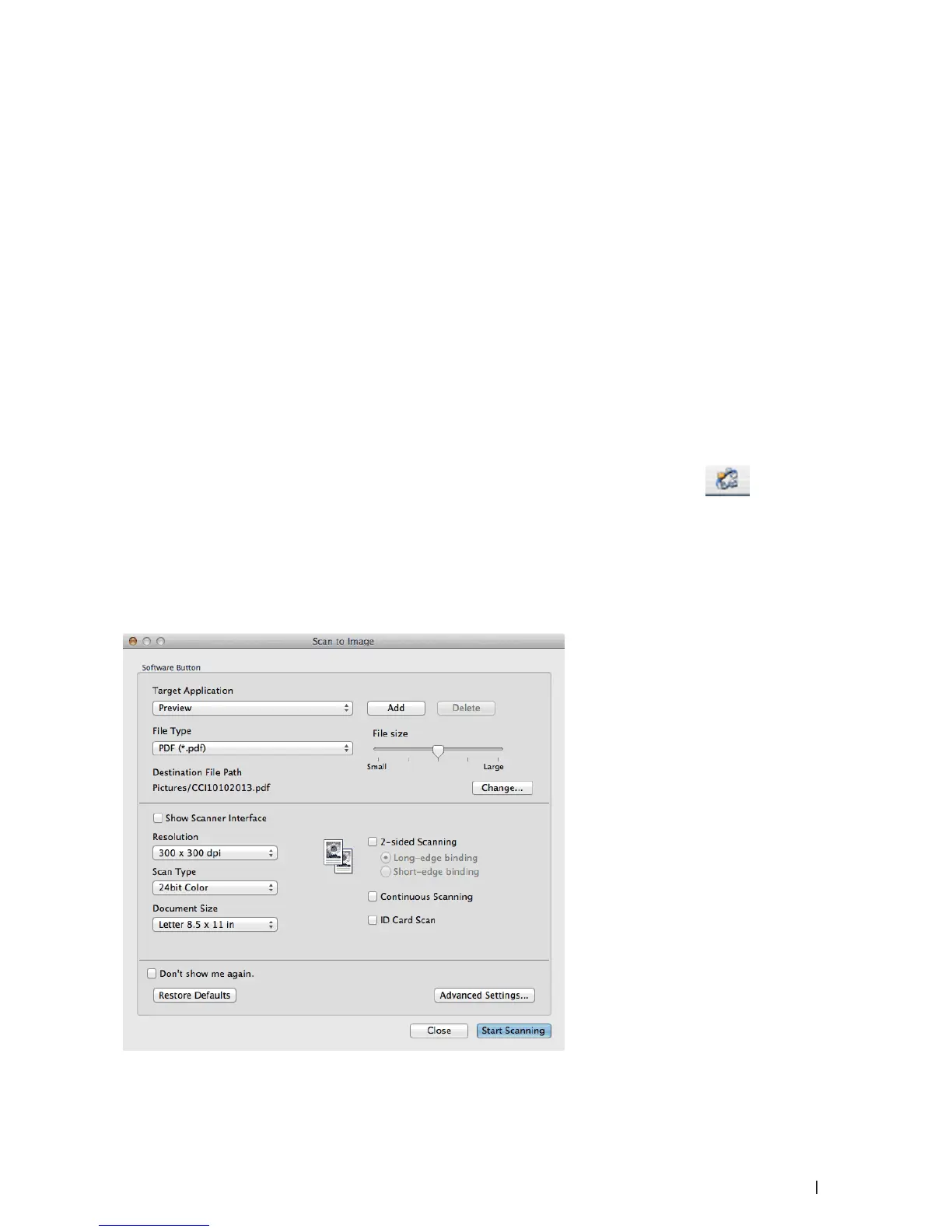 • Save Scanned Data to a Folder as a PDF File Using ControlCenter (Macintosh)