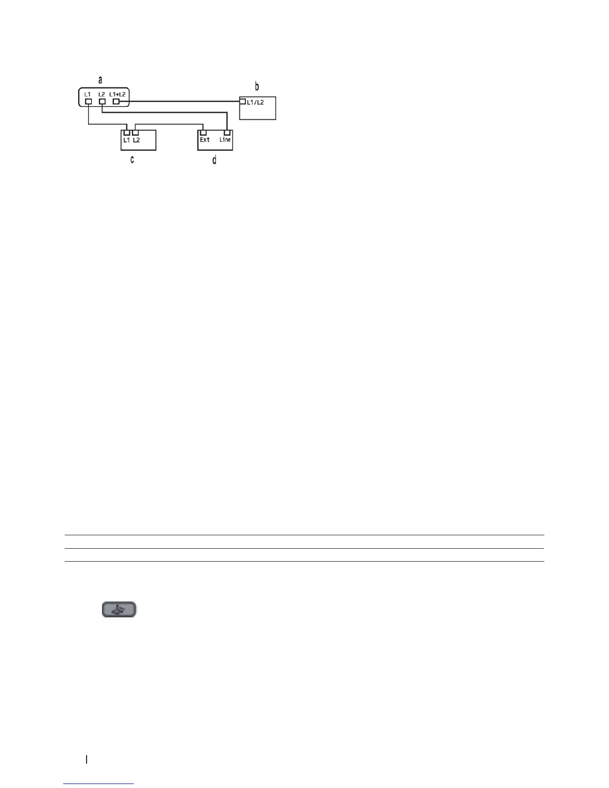 machine's wall outlet. You can plug the telephone line cord from the two-line telephone into the L1+L2 jack of the