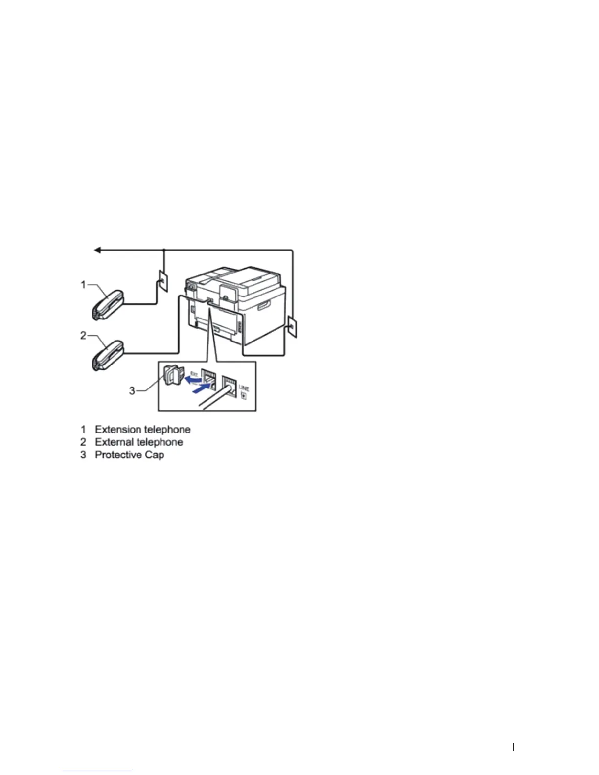 Before you connect an external telephone, remove the protective cap (3) from the EXT. jack on the machine.