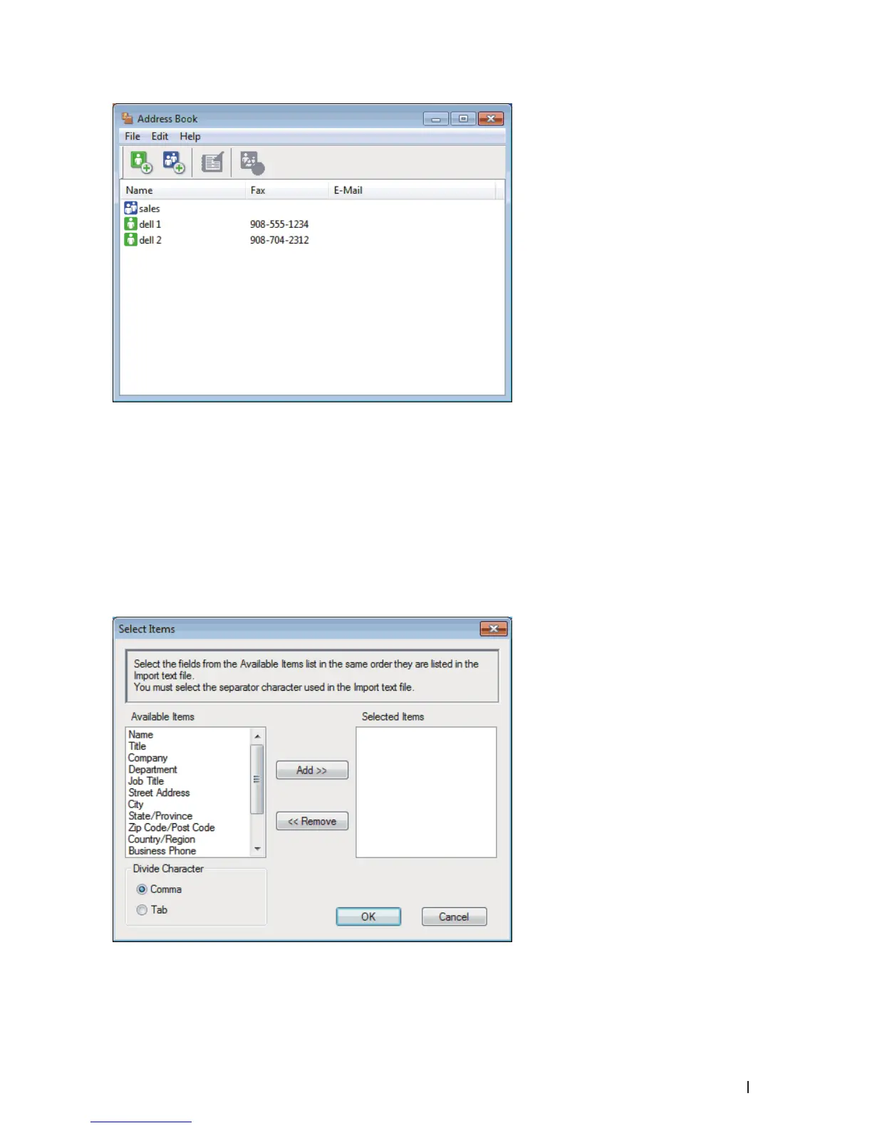 NOTE: You must select and add fields from the Available Items list in the same order they are listed in the import