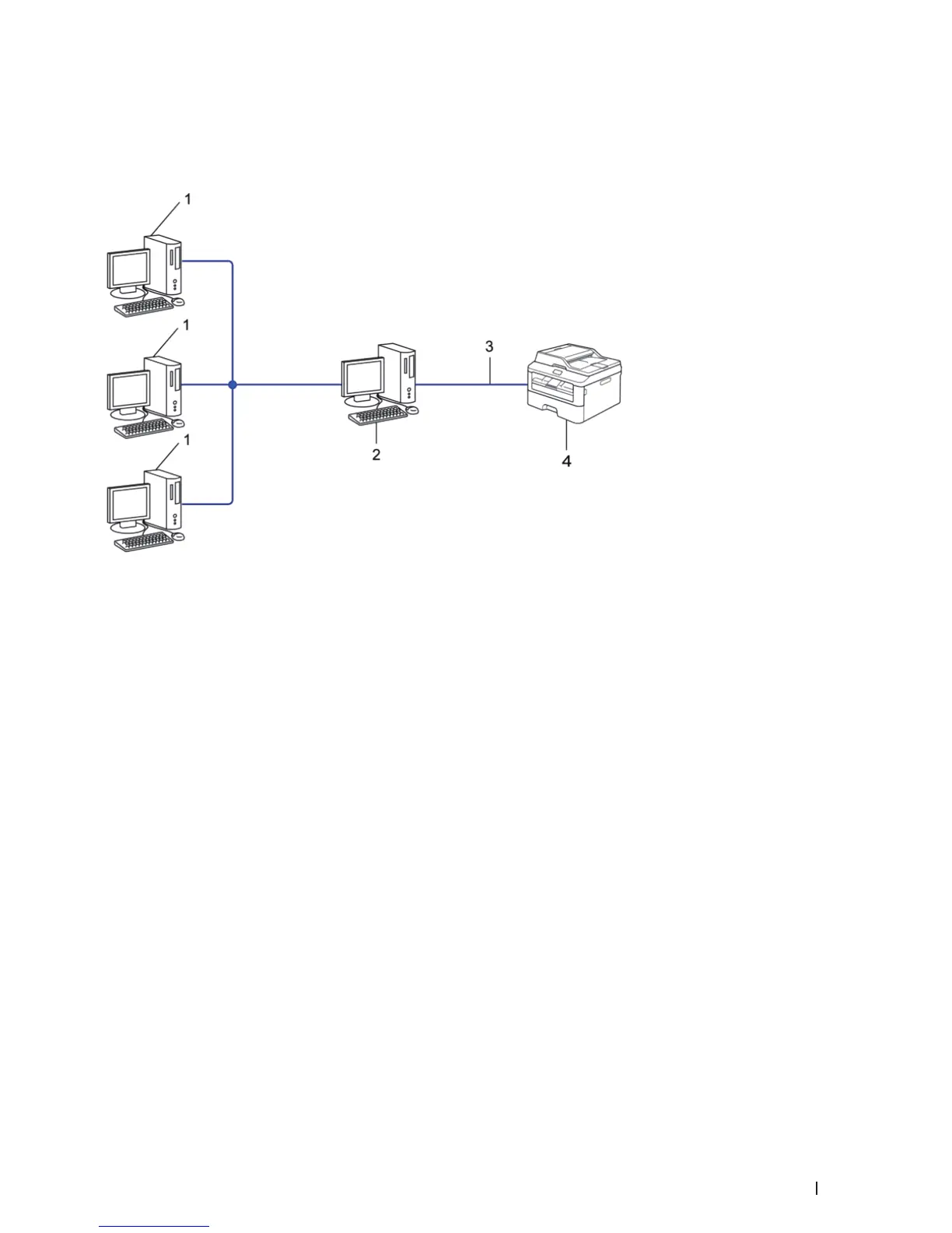 NOTE: In a larger network, we recommend a Network Shared Printing environment.