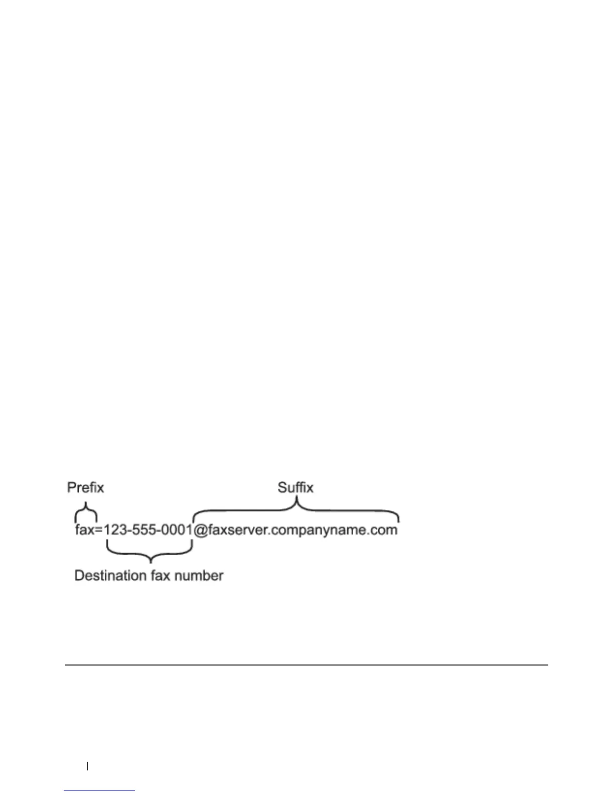 must be sent with a prefix and a suffix that match the parameters used by the fax server. In most cases, the syntax
