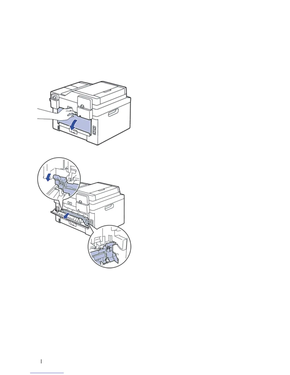 If the machine's control panel or the Status Monitor (for Macintosh only) indicates that there is a jam in the back