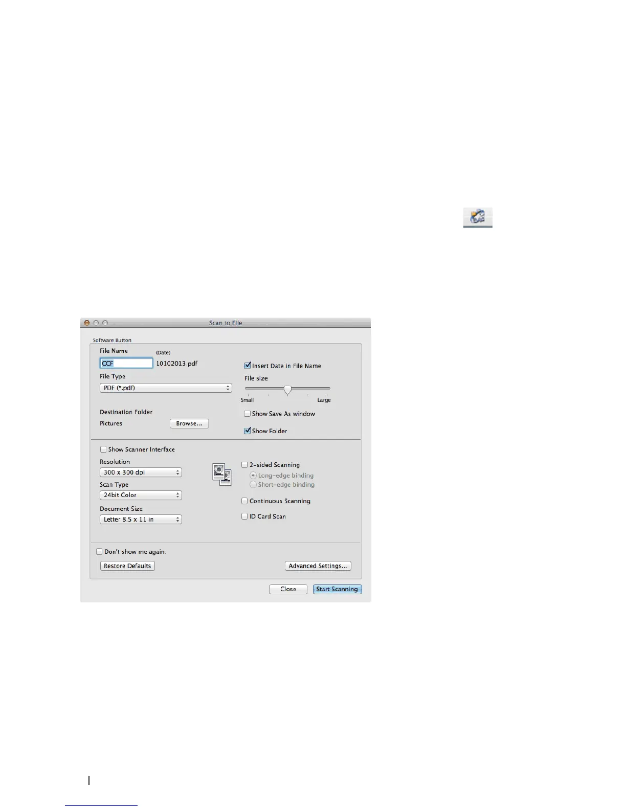 Save Scanned Data to a Folder as a PDF File Using ControlCenter (Macintosh)