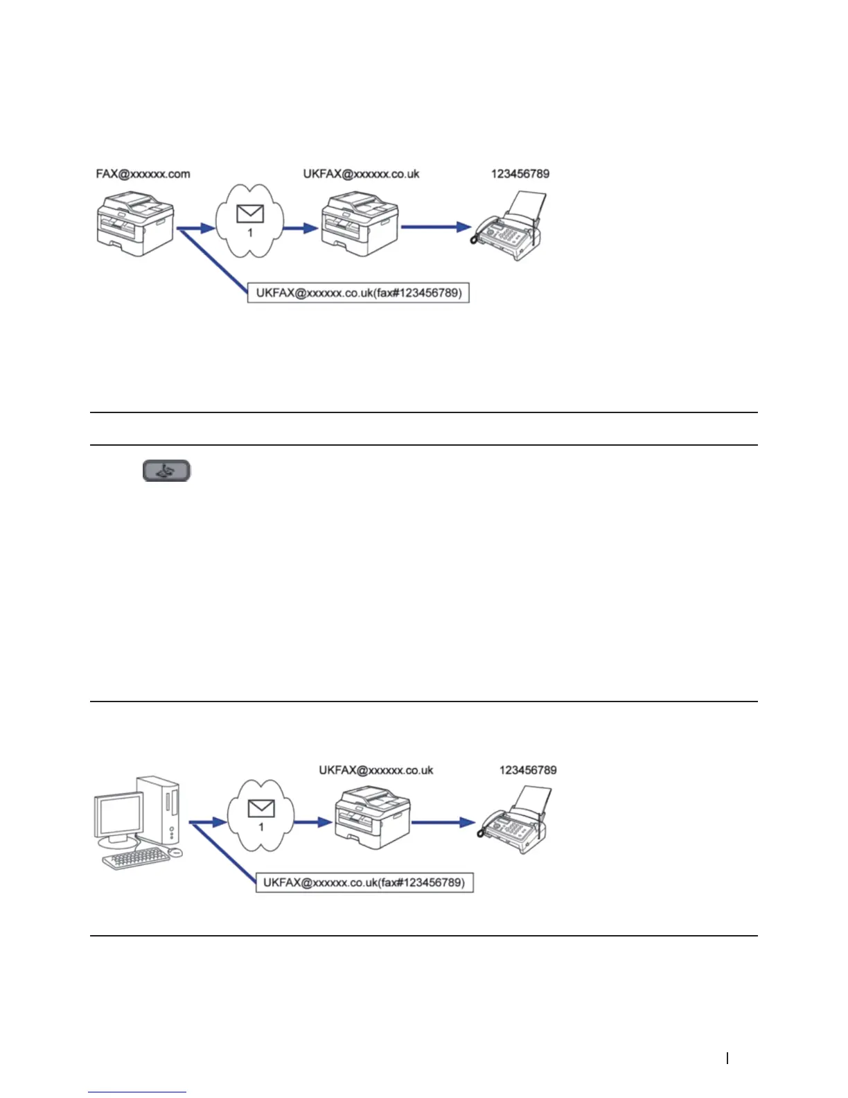 To use this feature, you must register the email addresses as the One Touch Dial numbers or Speed Dial numbers.