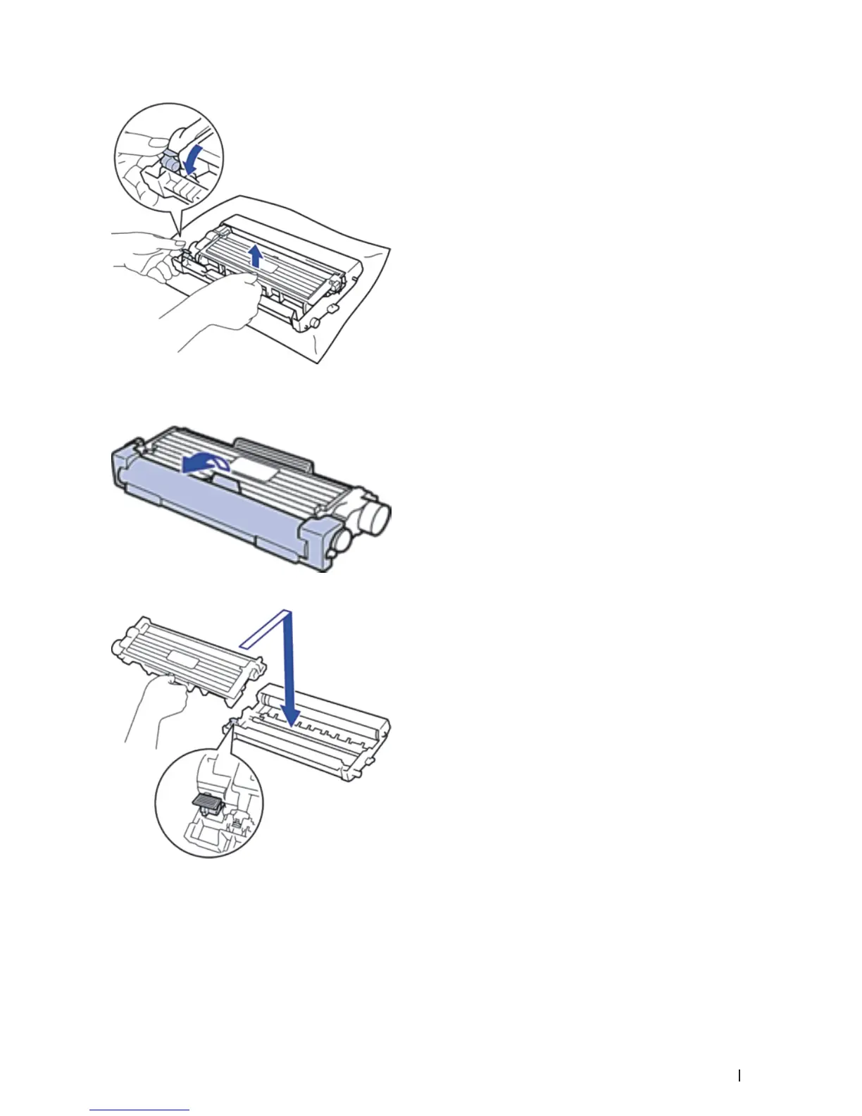 7. Put the new toner cartridge firmly into the drum unit until you hear it lock into place.