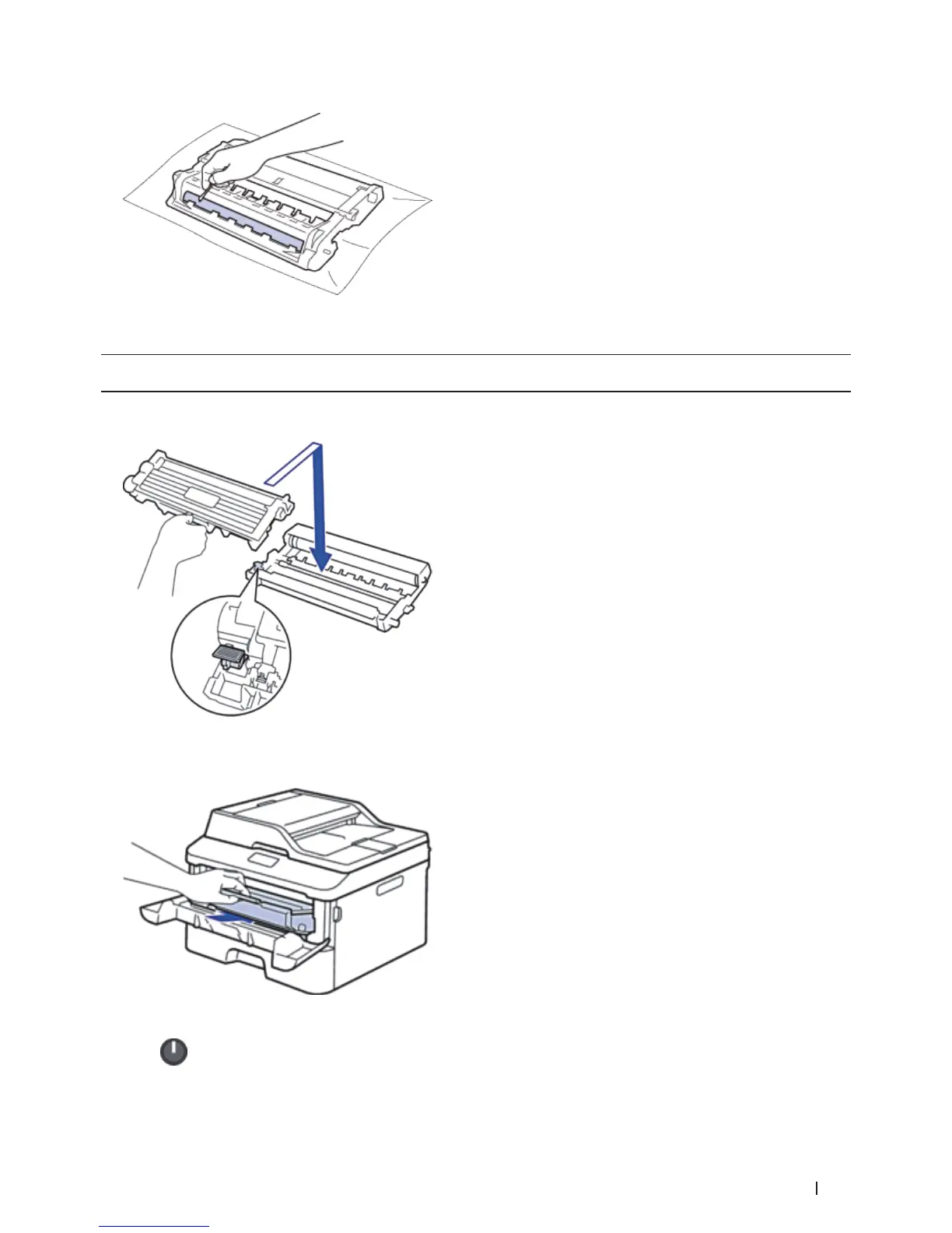 NOTE: Make sure you put the toner cartridge in correctly or it may separate from the drum unit.