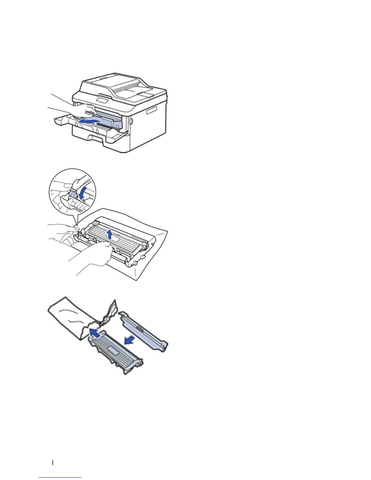 4. Push down the lock lever and take the toner cartridge out of the drum unit.