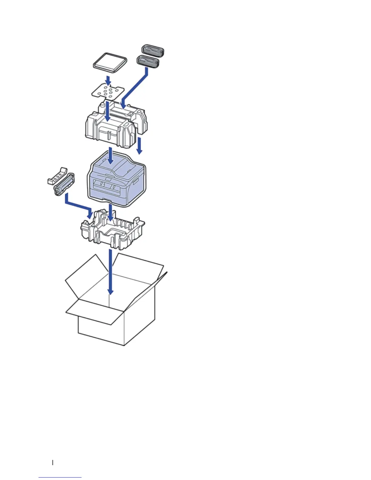 NOTE: Put the AC power cord and printed materials in the original carton as shown in the illustration.