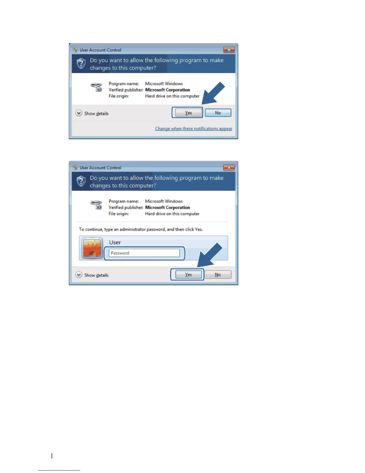 • For users who do not have administrator rights: Type the administrator password, and then click OK or
