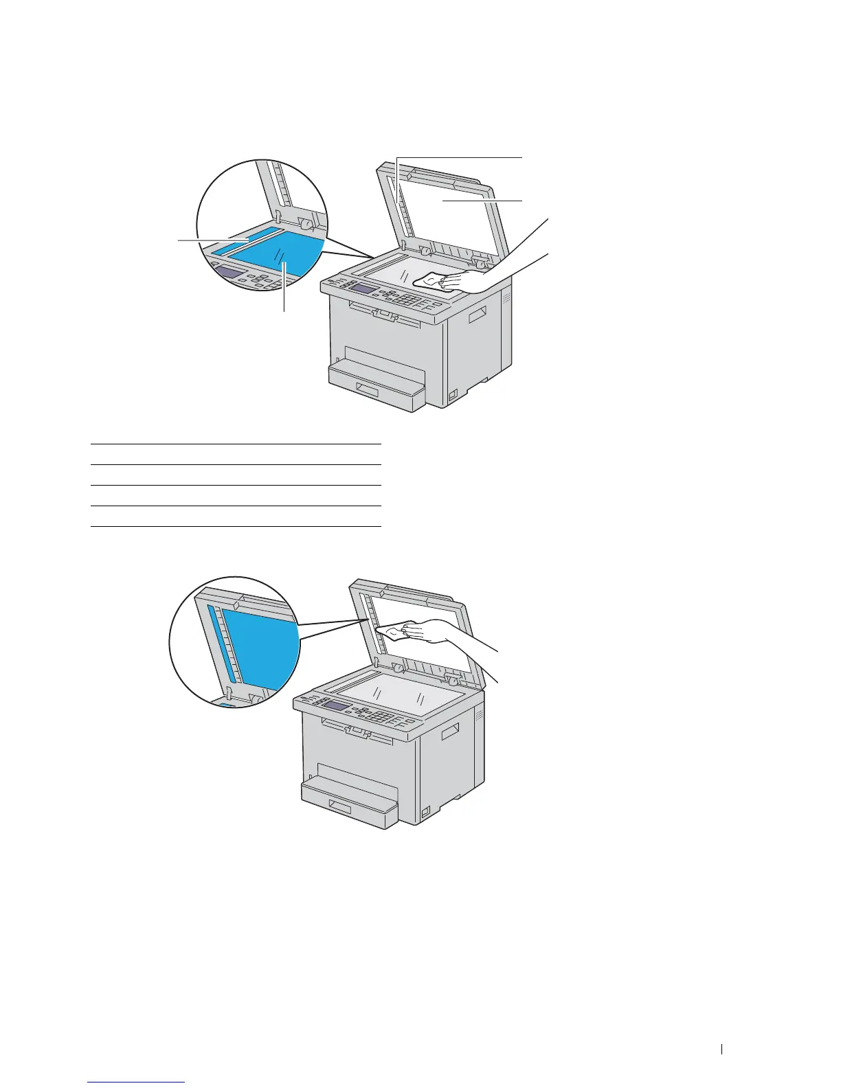 Wipe the underside of the white document cover and white sheet until they are clean and dry.