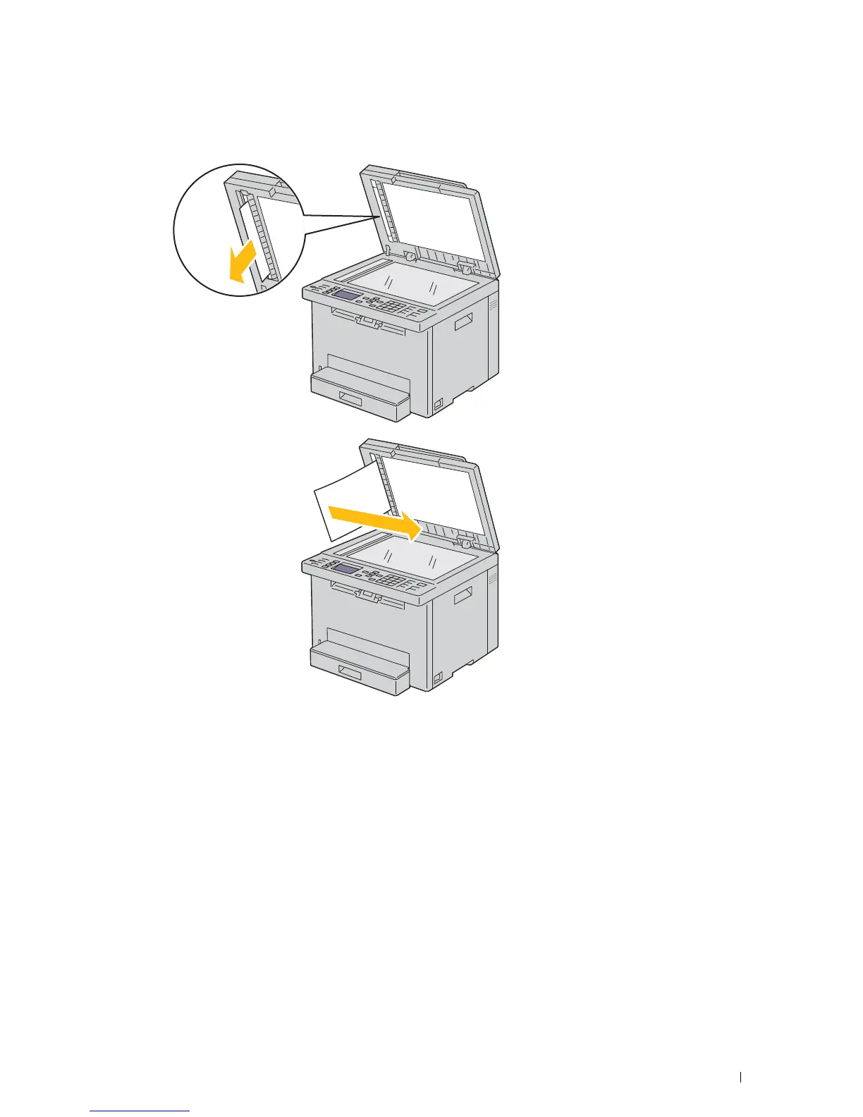 Remove the document from the ADF feed roller or the feed area by carefully pulling the document in the direction