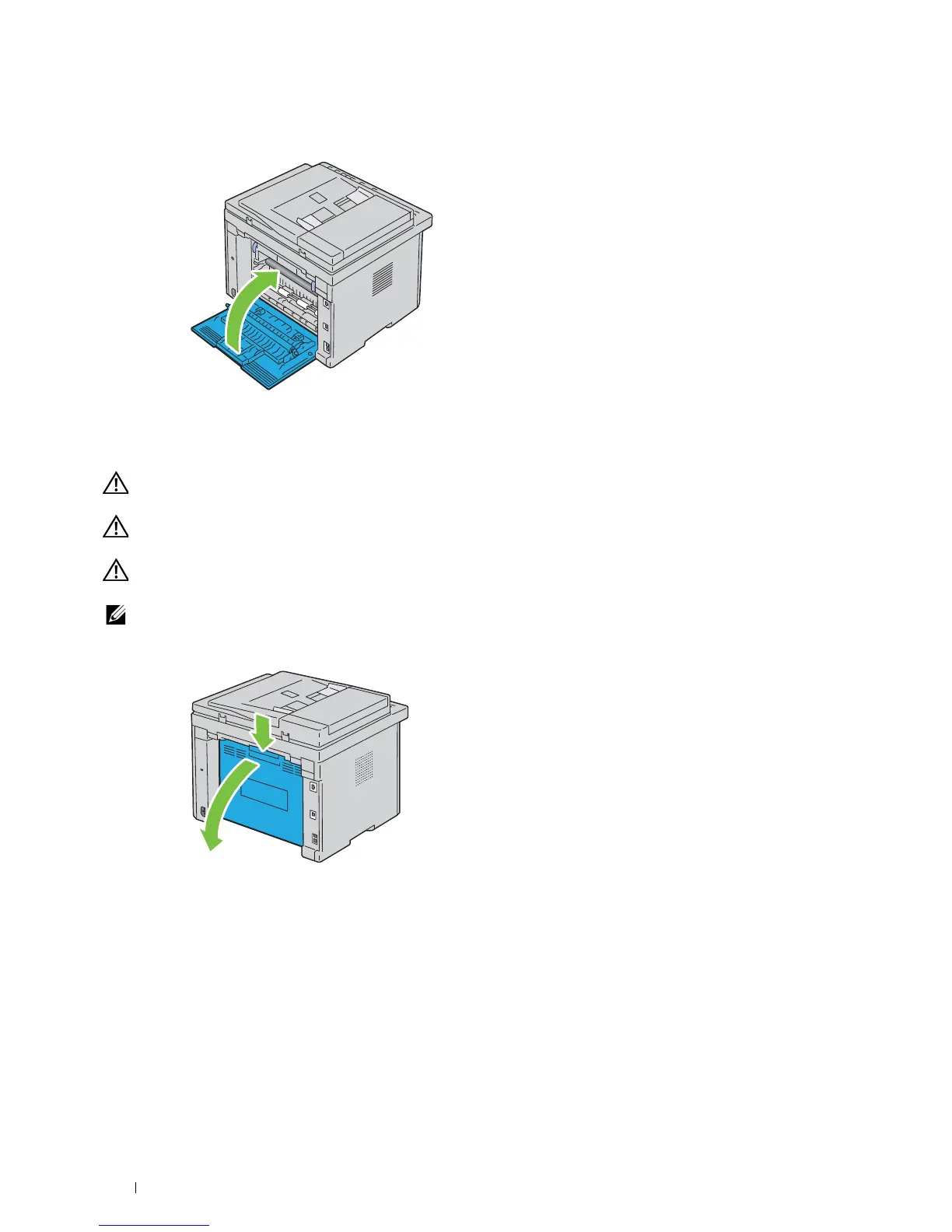 To avoid burns, do not clear paper jams immediately after printing. The fusing unit becomes extremely hot during