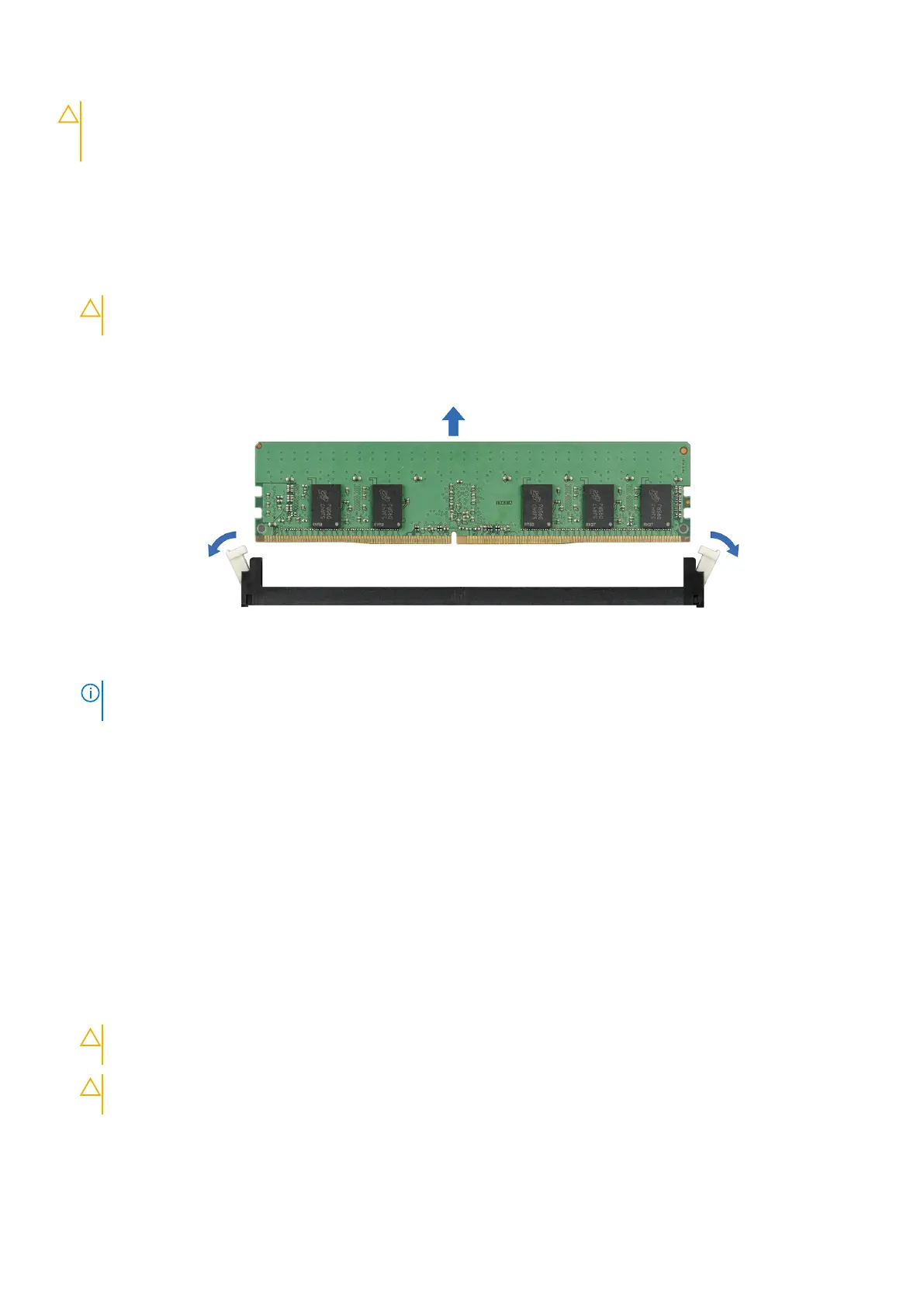 CAUTION: Handle each memory module only by the edges, ensuring not to touch the middle of the memory