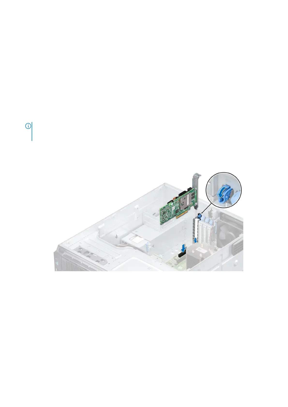 5. Close the expansion card retention latch by pushing the latch down until the latch snaps into place.