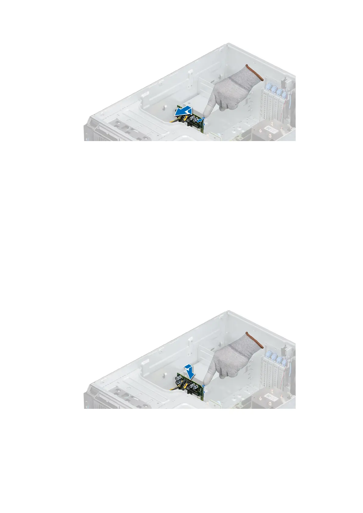 1. Align the slots on the power interposer board (PIB) with the hooks on the power supply unit (PSU) cage and slide the PIB