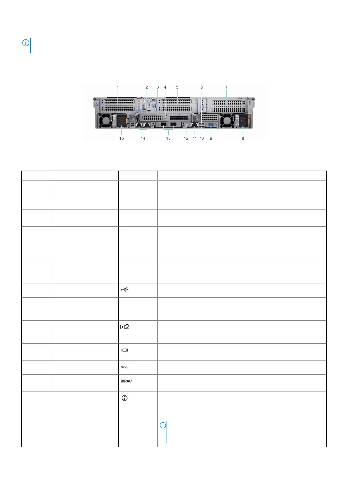 11 iDRAC dedicated port Enables you to remotely access iDRAC. For more information, see the
