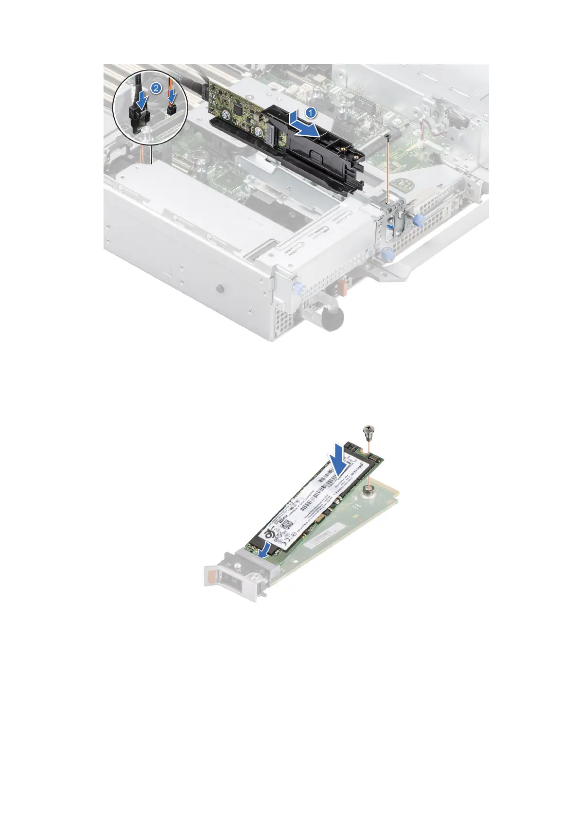 6. Align the M.2 SSD at an angle with the BOSS S2 card carrier.