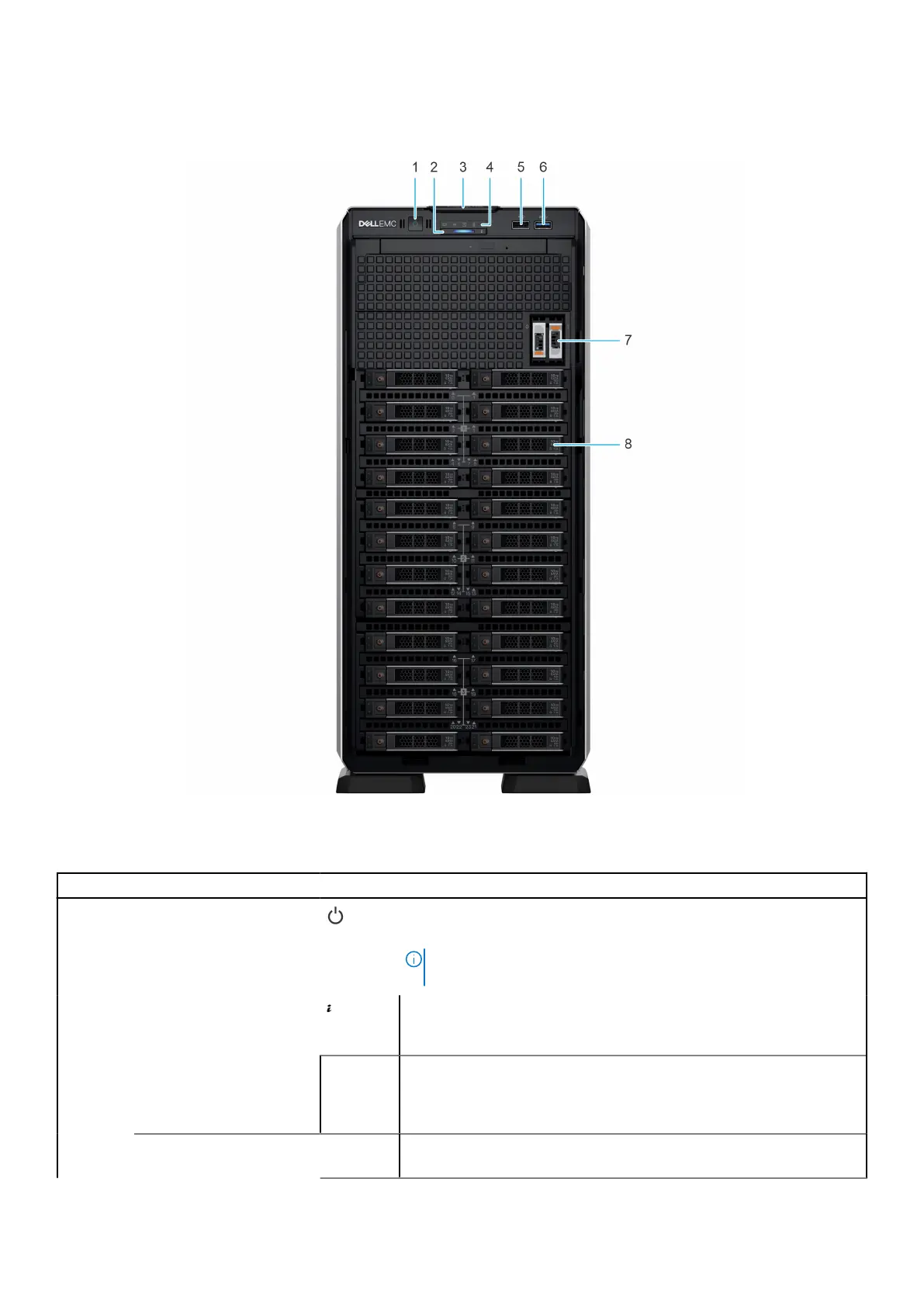 Status LED indicators N/A Enables you to identify any failed hardware components. There are
