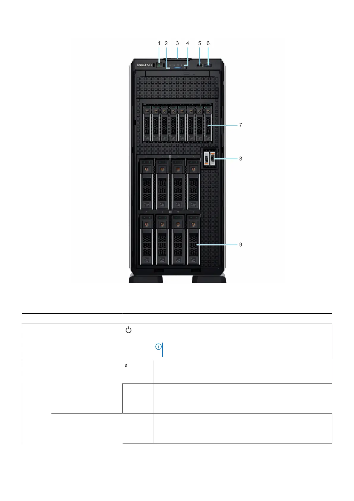 Status LED indicators N/A Enables you to identify any failed hardware components. There are