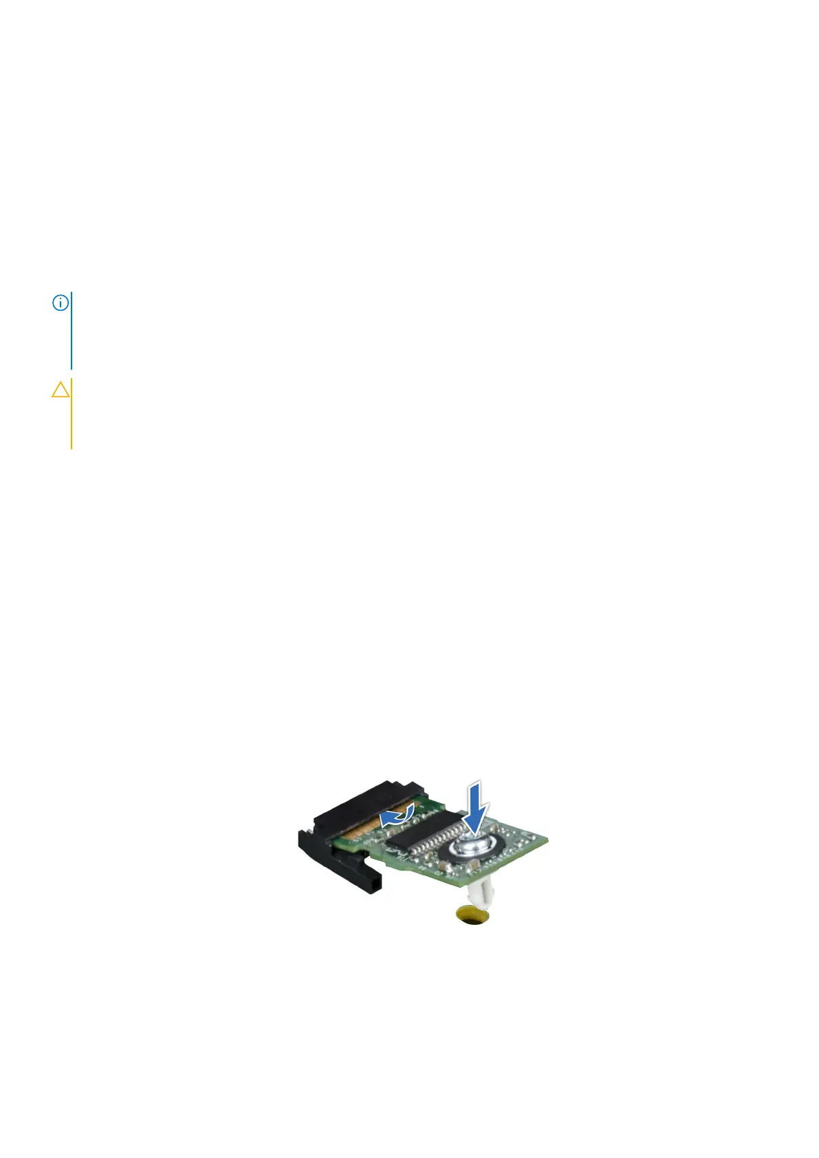 1. To install the TPM, align the edge connectors on the TPM with the slot on the TPM connector.