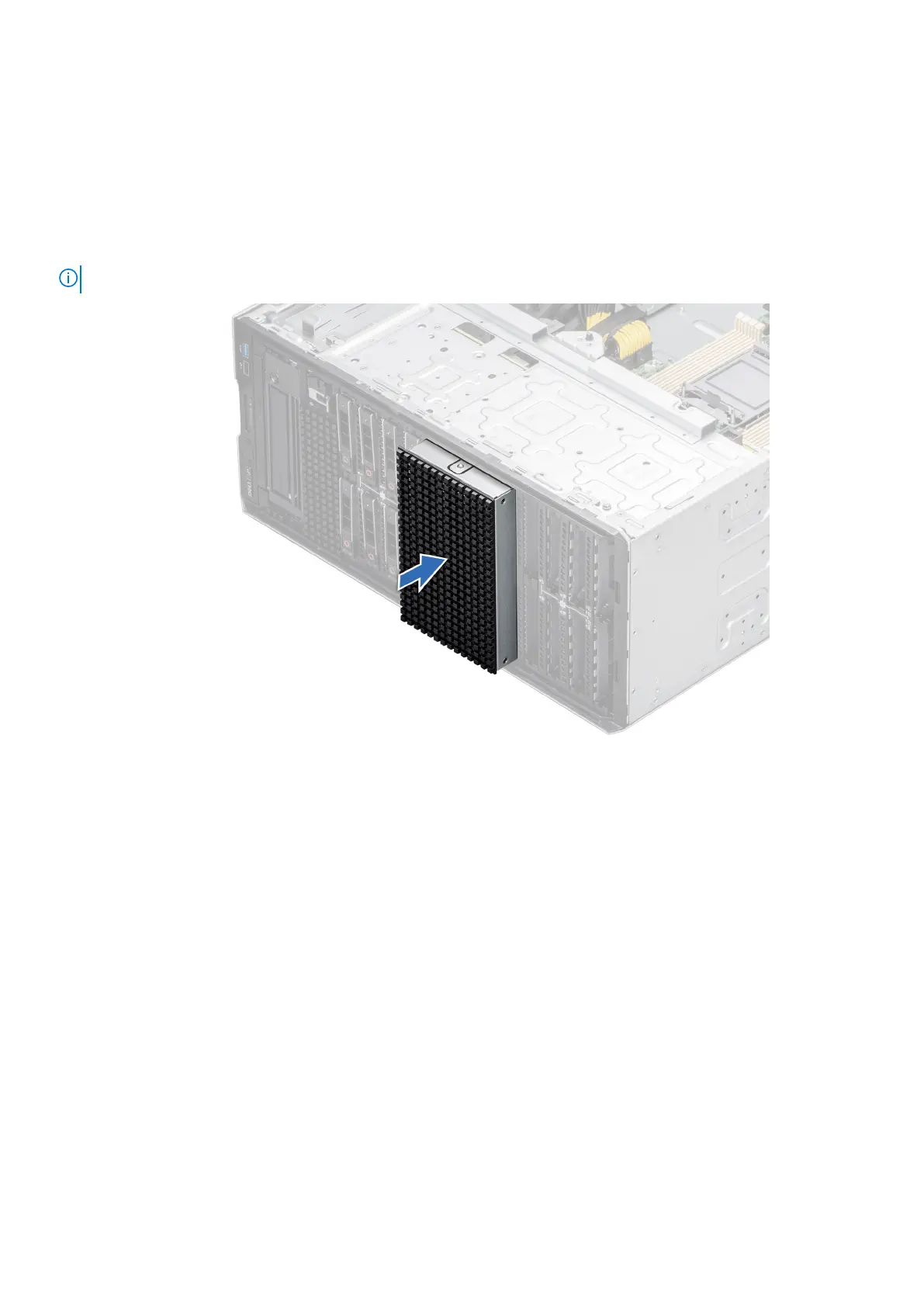 Align and push the blank into the drive bay cage slot, until it clicks into place.