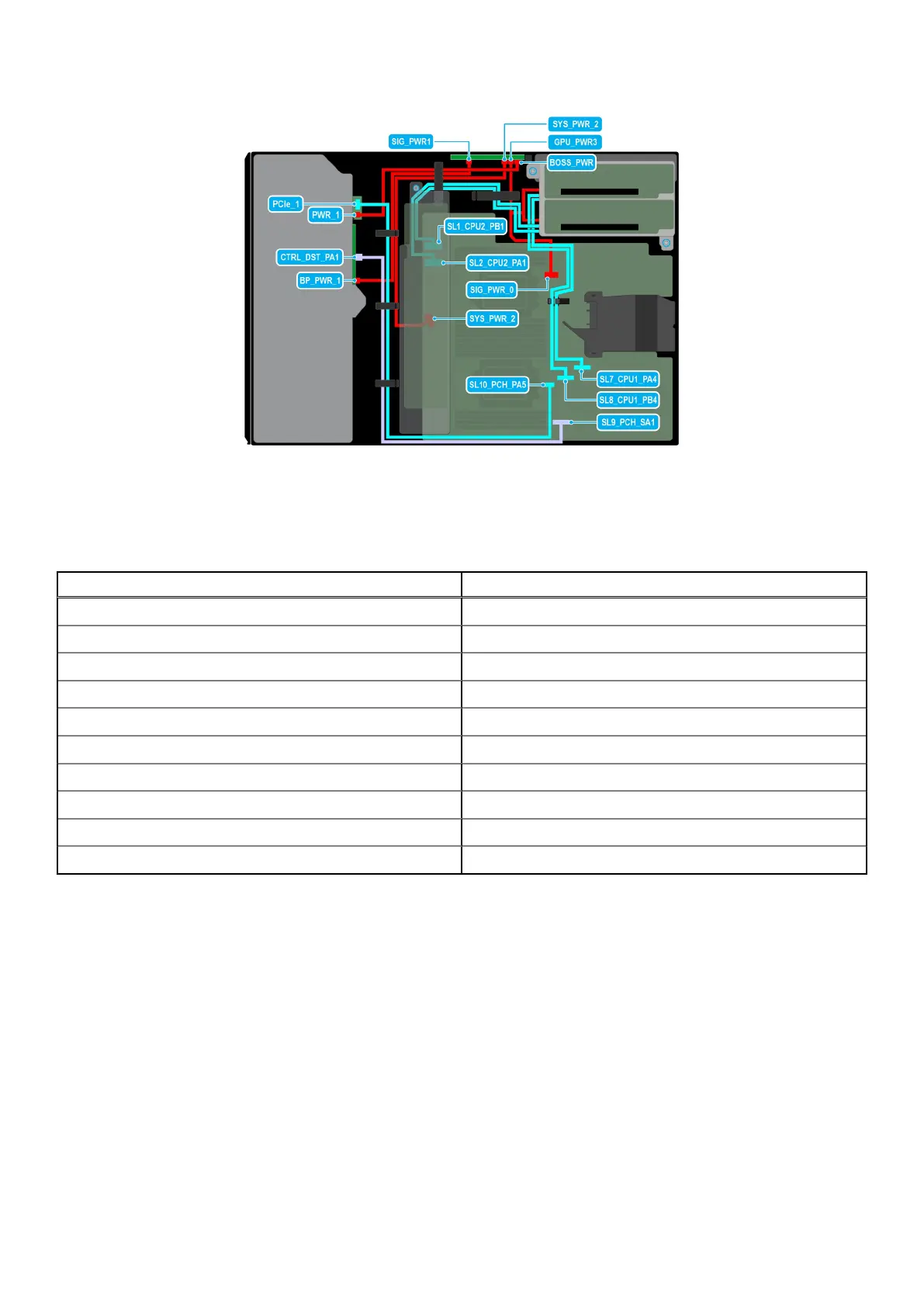 Table 20. Cable routing - 8 x 2.5-inch SATA with two GPU risers