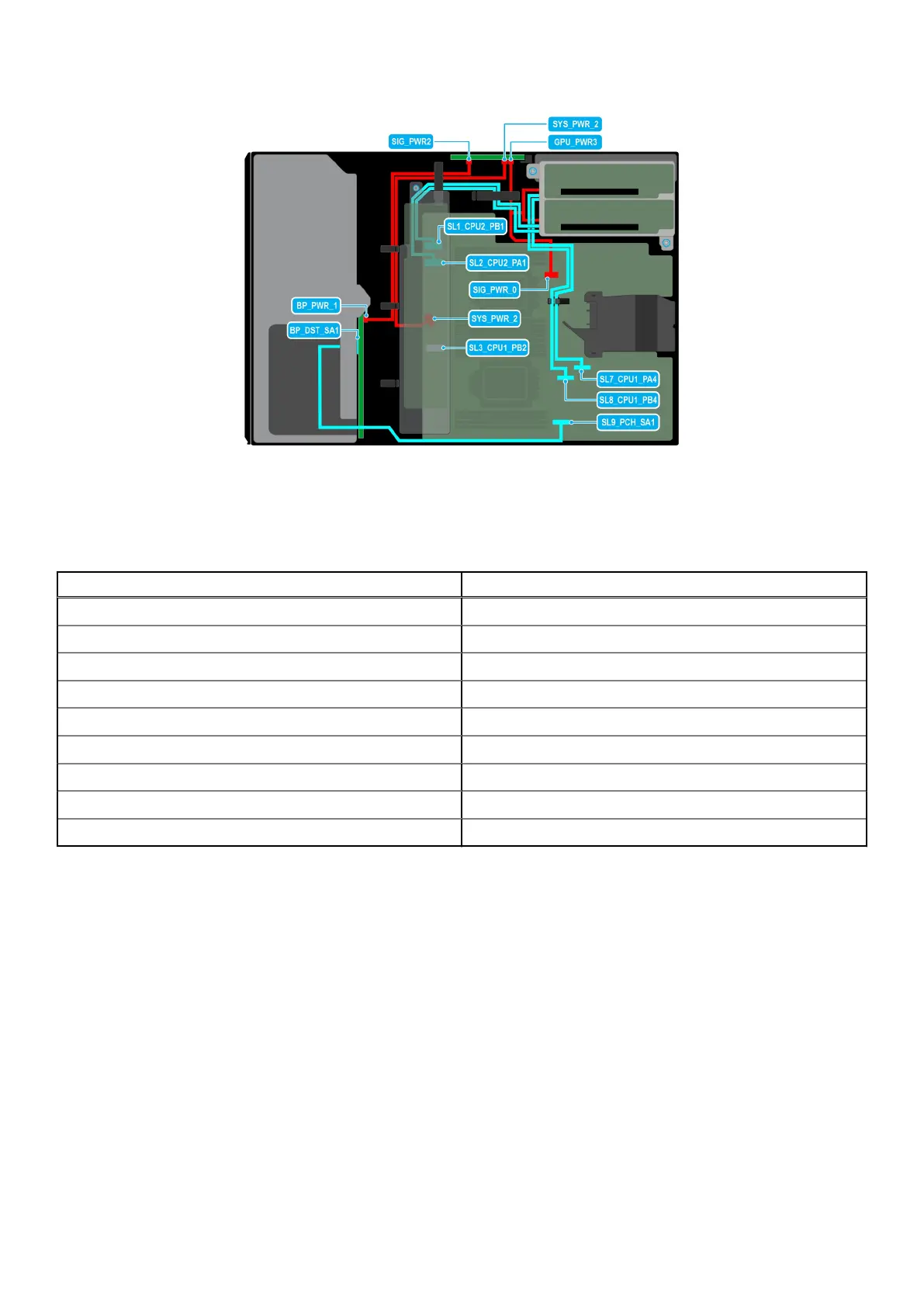 Table 32. Cable routing - 8 x 3.5-inch SATA with two GPU risers