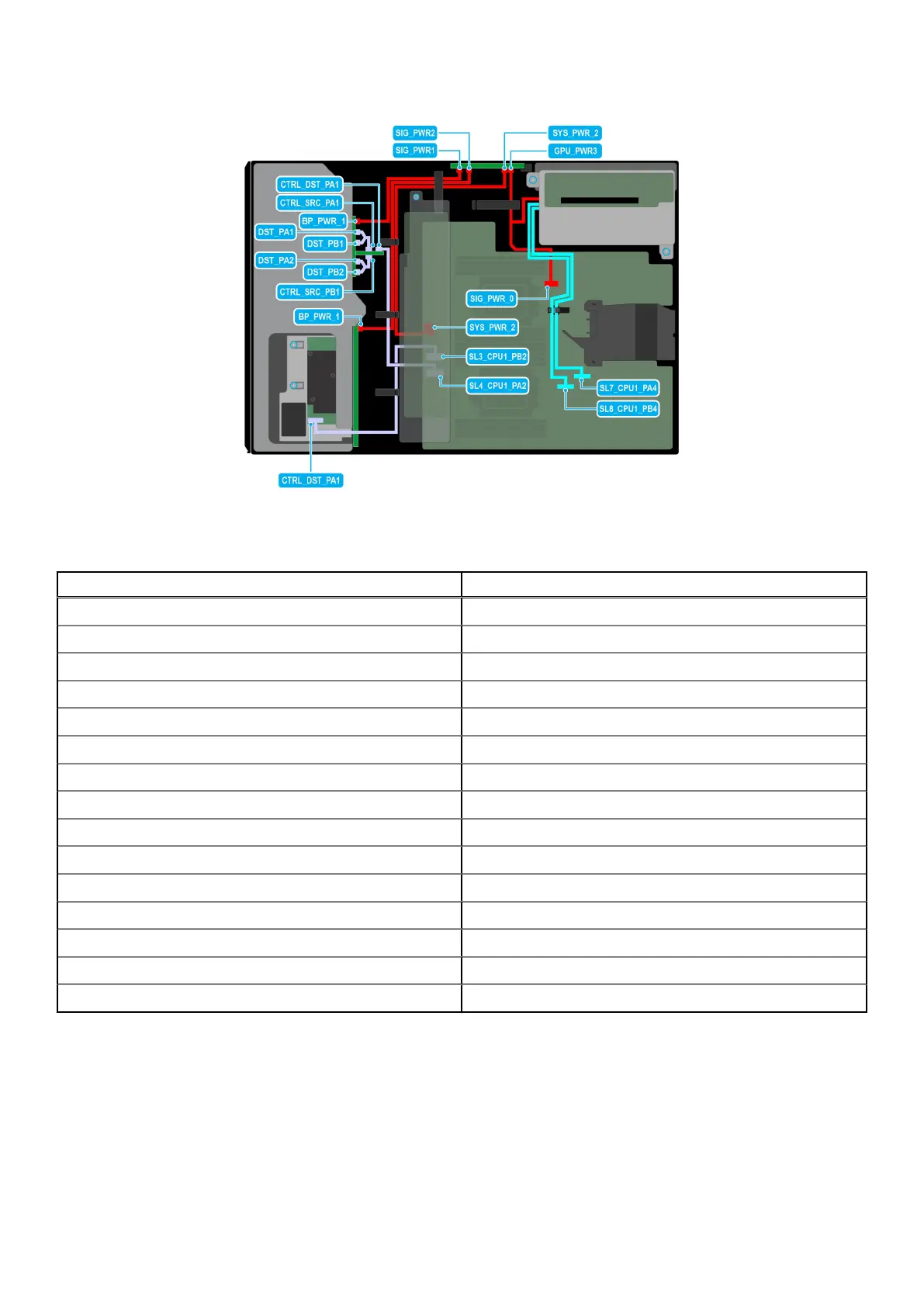 Table 34. Cable routing - 8 x 3.5-inch + 8 x 2.5-inch NVMe with GPU riser