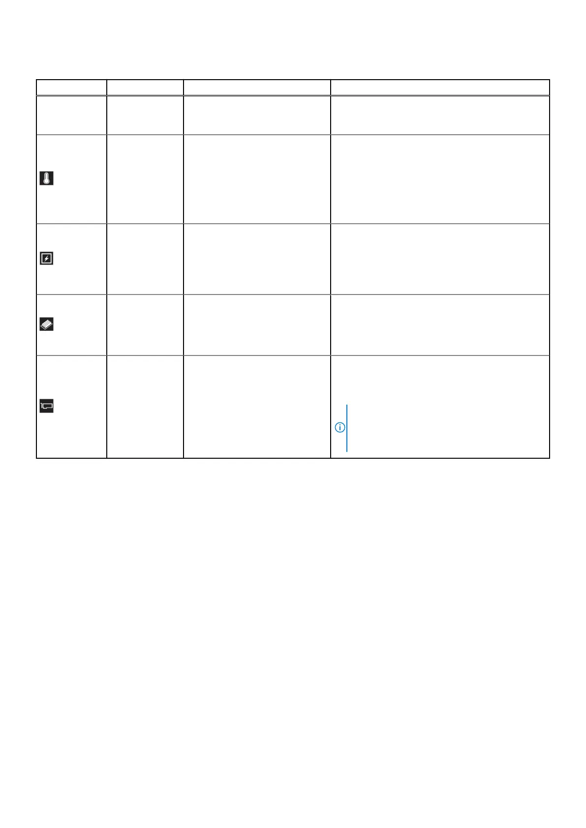 Icon Description Condition Corrective action