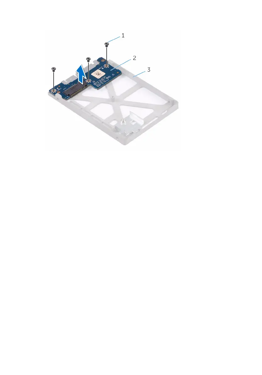 2 Lift the interposer board off the solid-state drive card bracket.