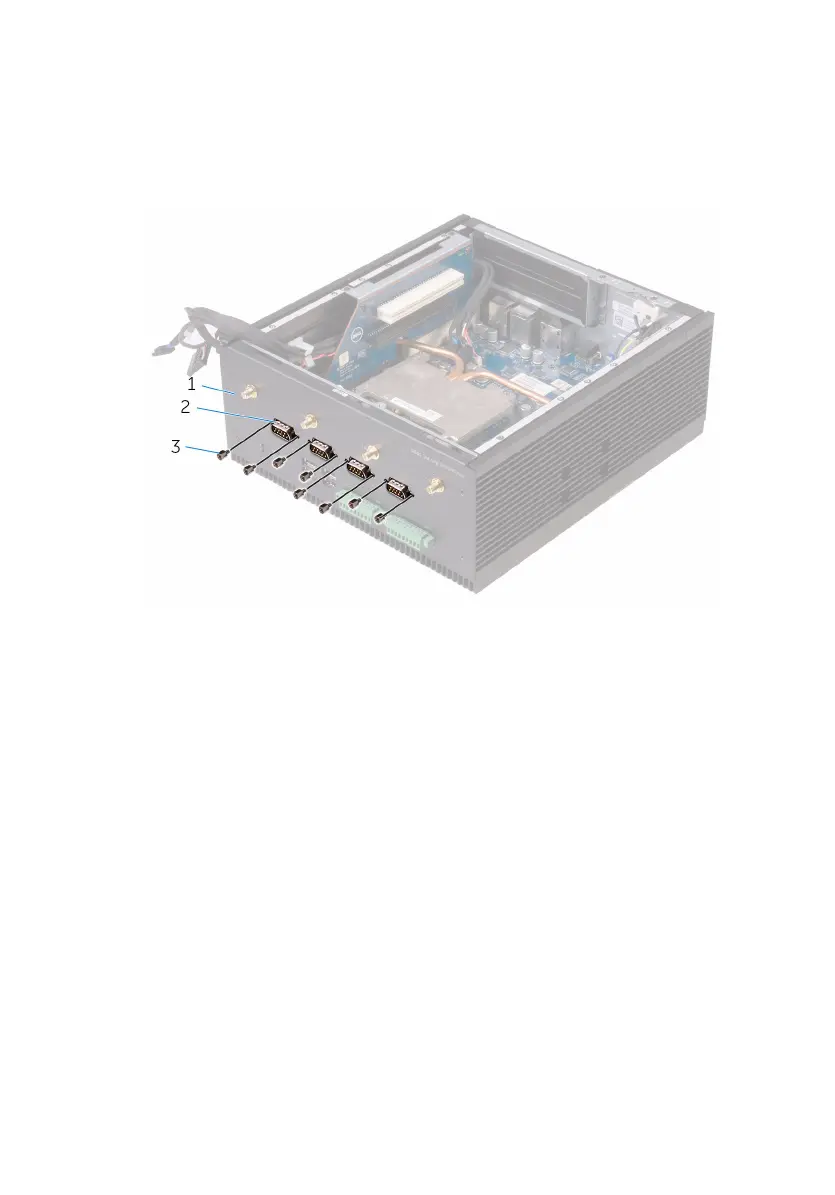 1 Remove the hexagonal screws that secure the serial ports to the bottom-