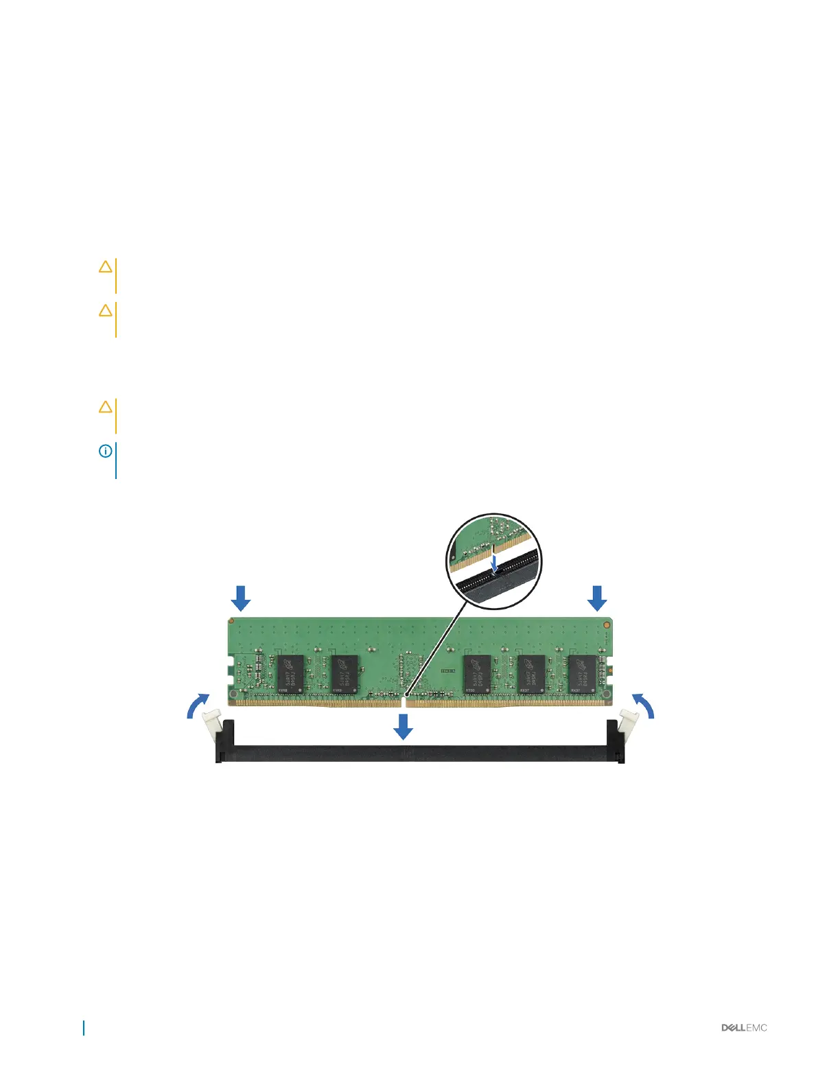 CAUTION: Handle each memory module only by the edges, ensuring not to touch the middle of the memory module or