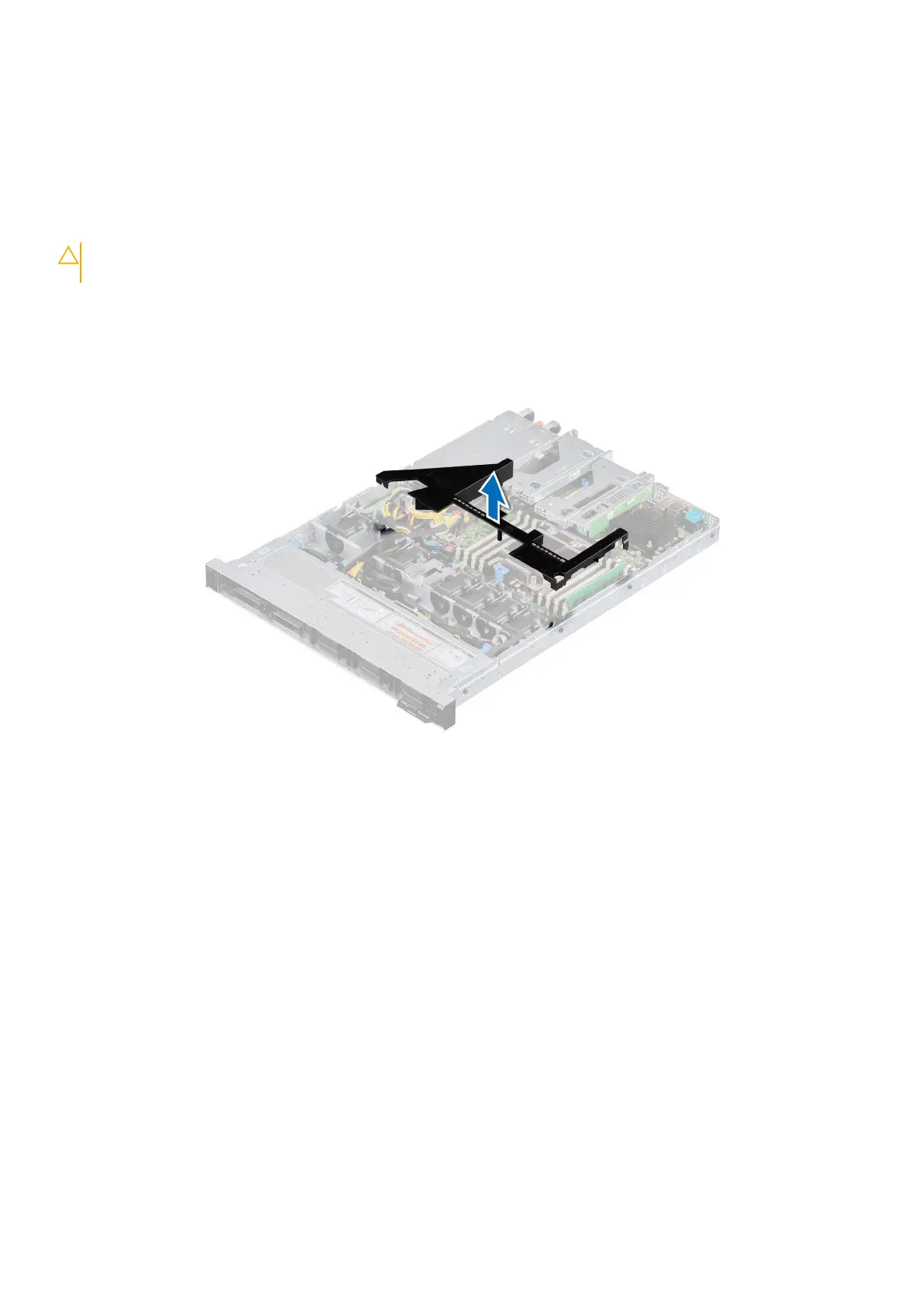 Hold the air shroud touch points at both ends and lift the air shroud out of the system.