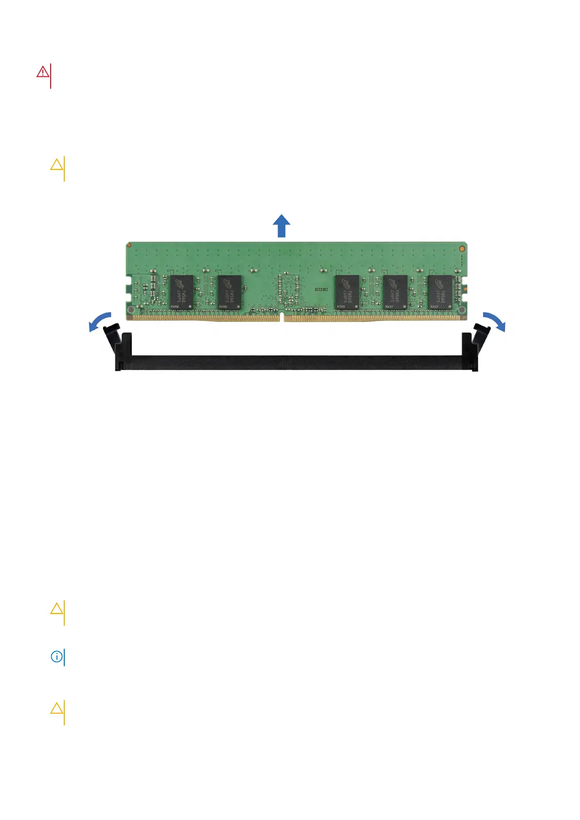 CAUTION: Handle each memory module only by the card edges, ensuring not to touch the middle of the
