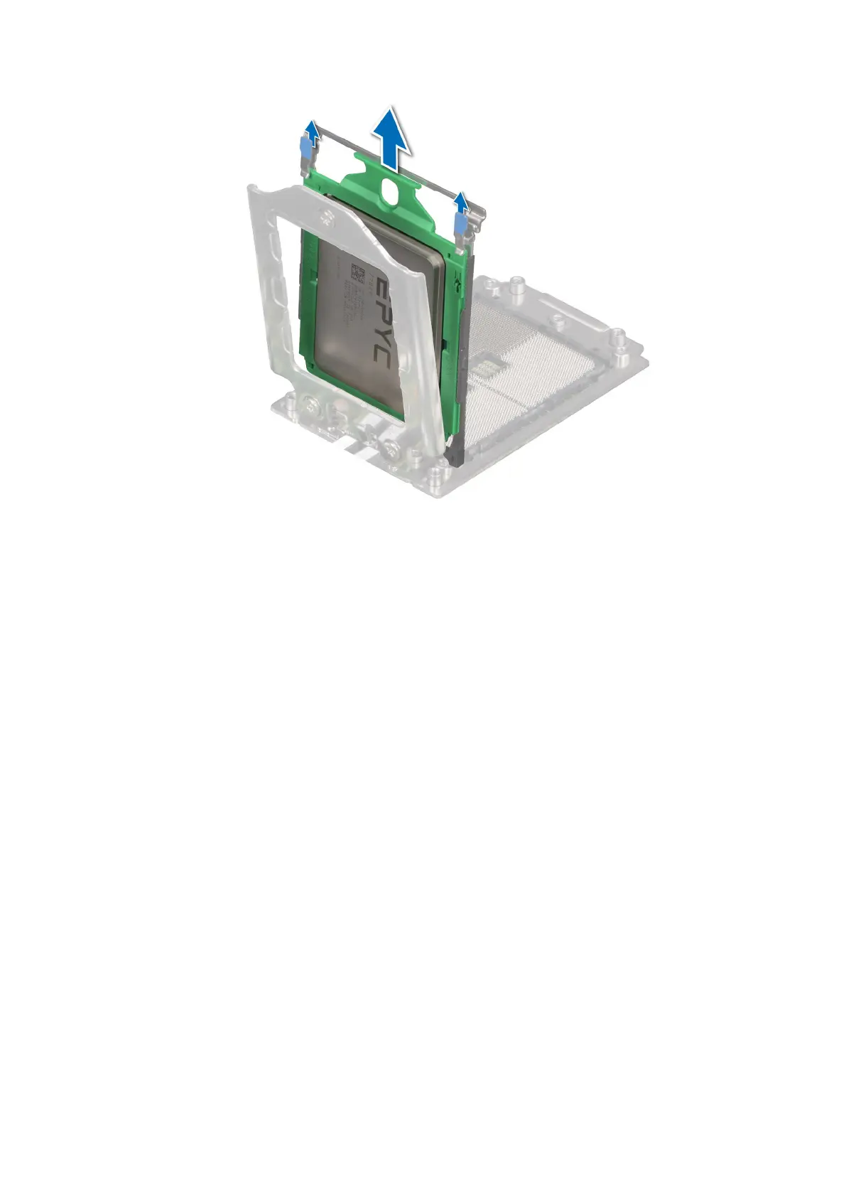 1. Holding the blue tab on the processor tray, slide the tray into the processor socket rail frame until firmly seated.